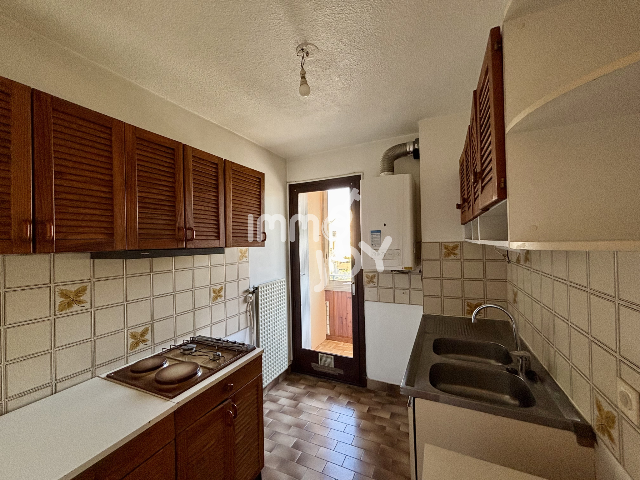 ... dans résidence arborée et sécurisée proche commerces, comprenant un hall avec placard, une cuisine ...
