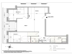 ...Il se compose d'une entrée avec placard, 2 chambres avec placard, salle d'eau avec douche à...