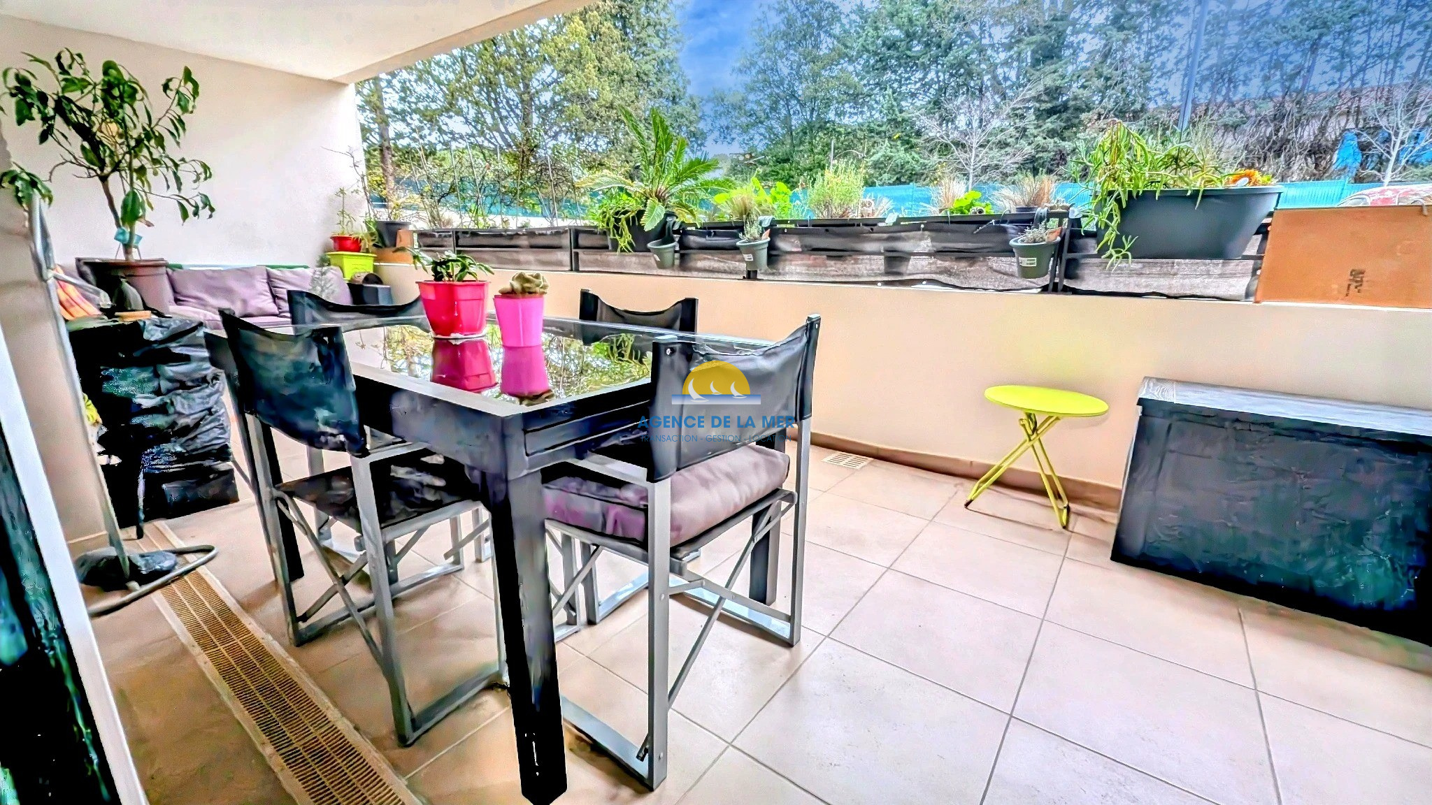 ...Une large terrasse couverte de 30 m2 et un jardinet de 50 m2...