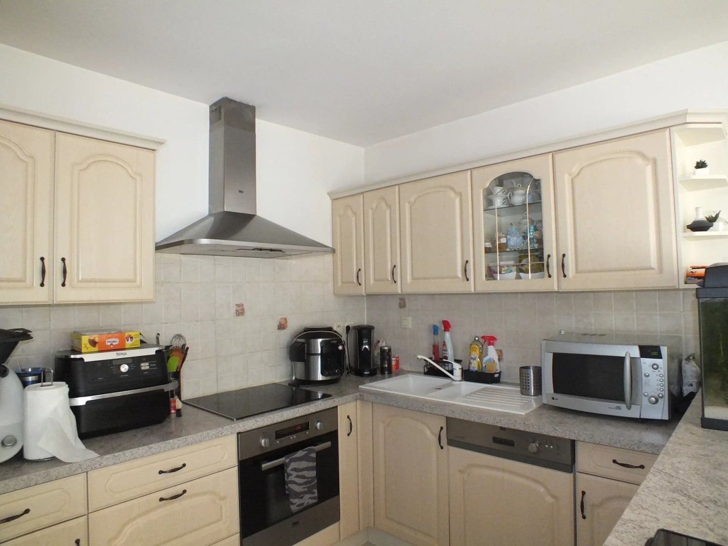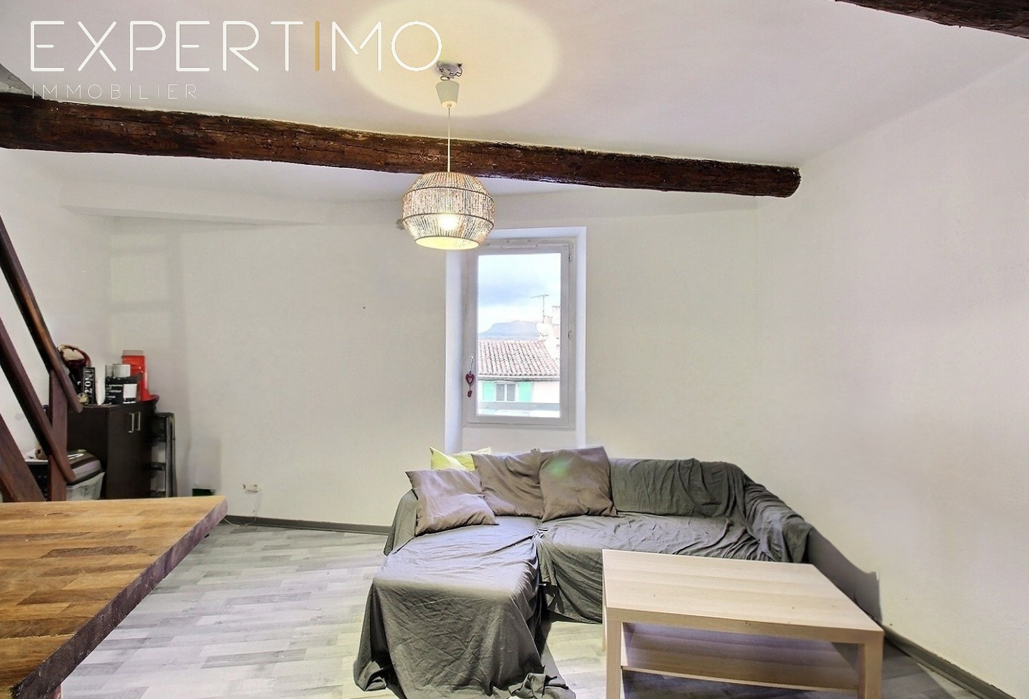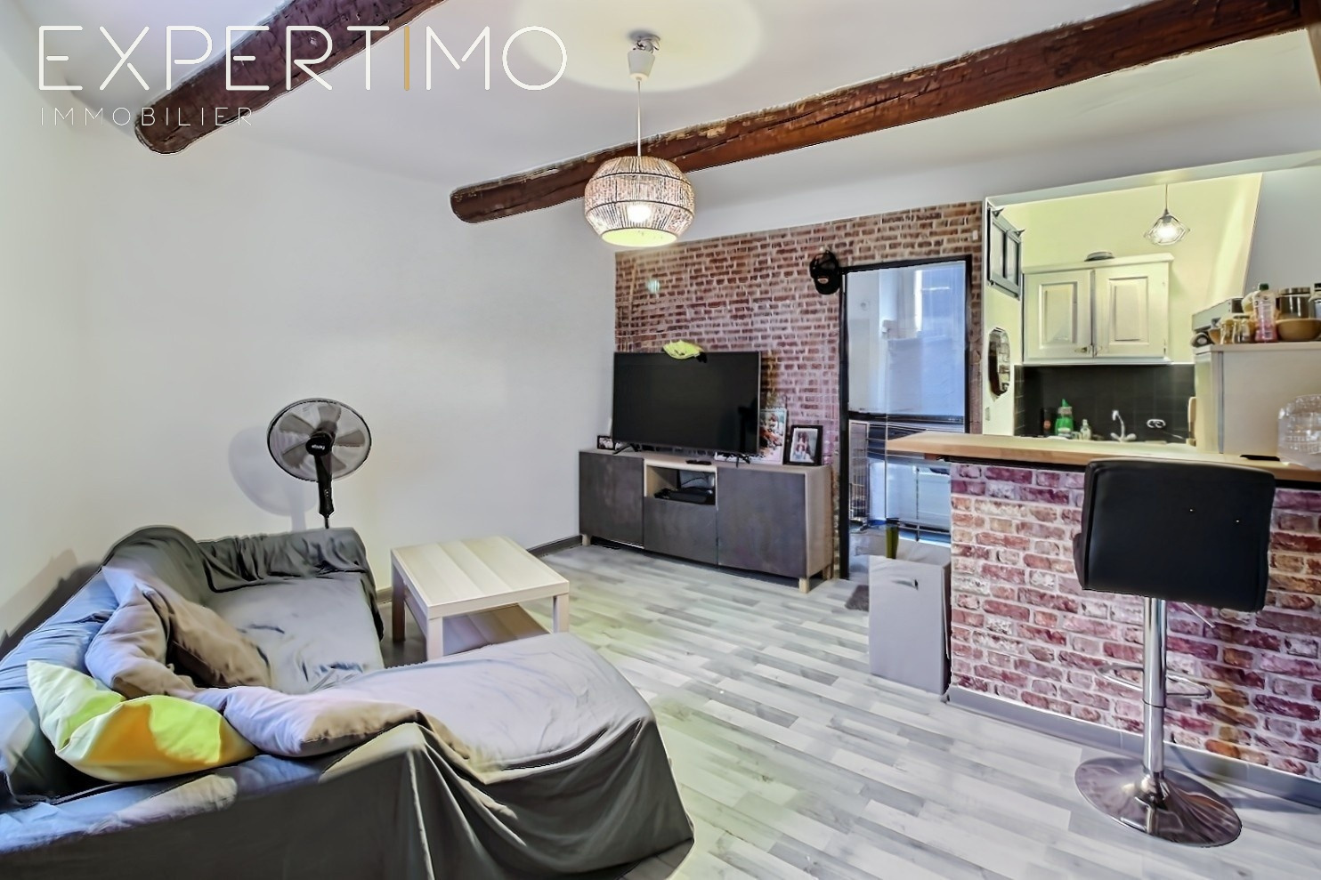 ...Jolie pièce de vie avec cuisine ouverte équipée, s'ouvrant sur la grande terrasse au Sud avec...
