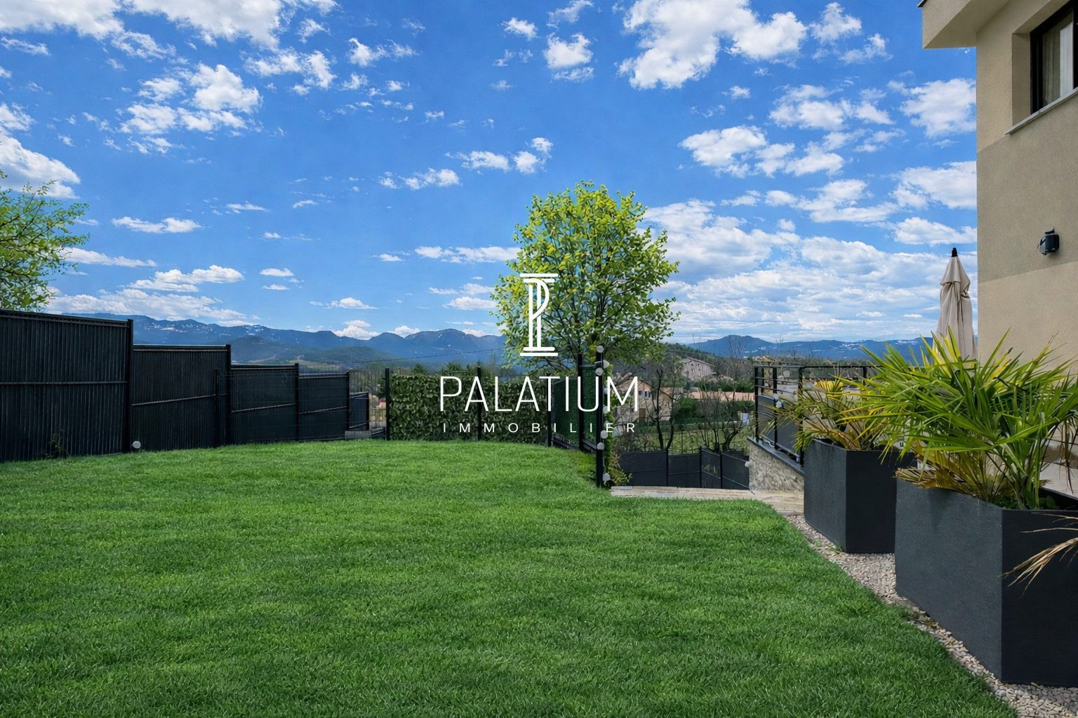 ...La terrasse couverte profite d'un grand store banne à télécommande et ouvre sur un jardin...