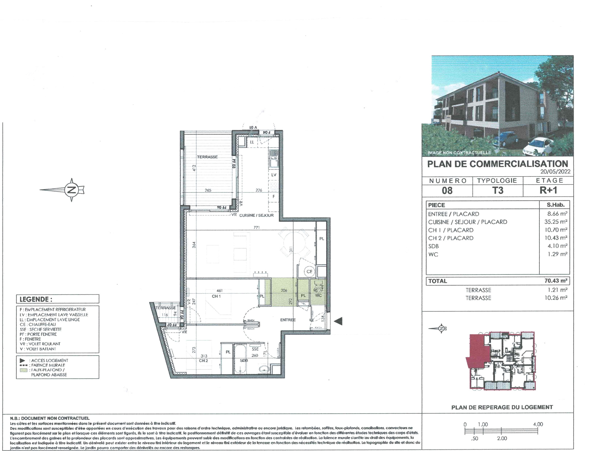...43m2 au 1er étage, vous offrant un hall d'entrée séjour climatisé avec cuisine ouverte ouvrant...