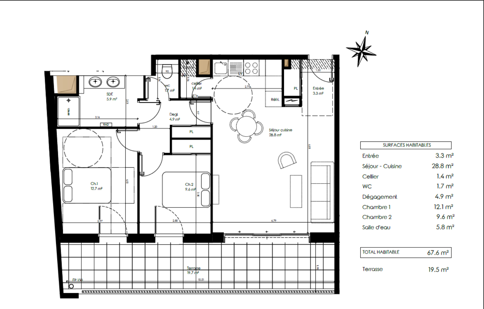 ...D'une surface d'environ 65 m², il se compose d'une entrée, d'un séjour lumineux avec cuisine...