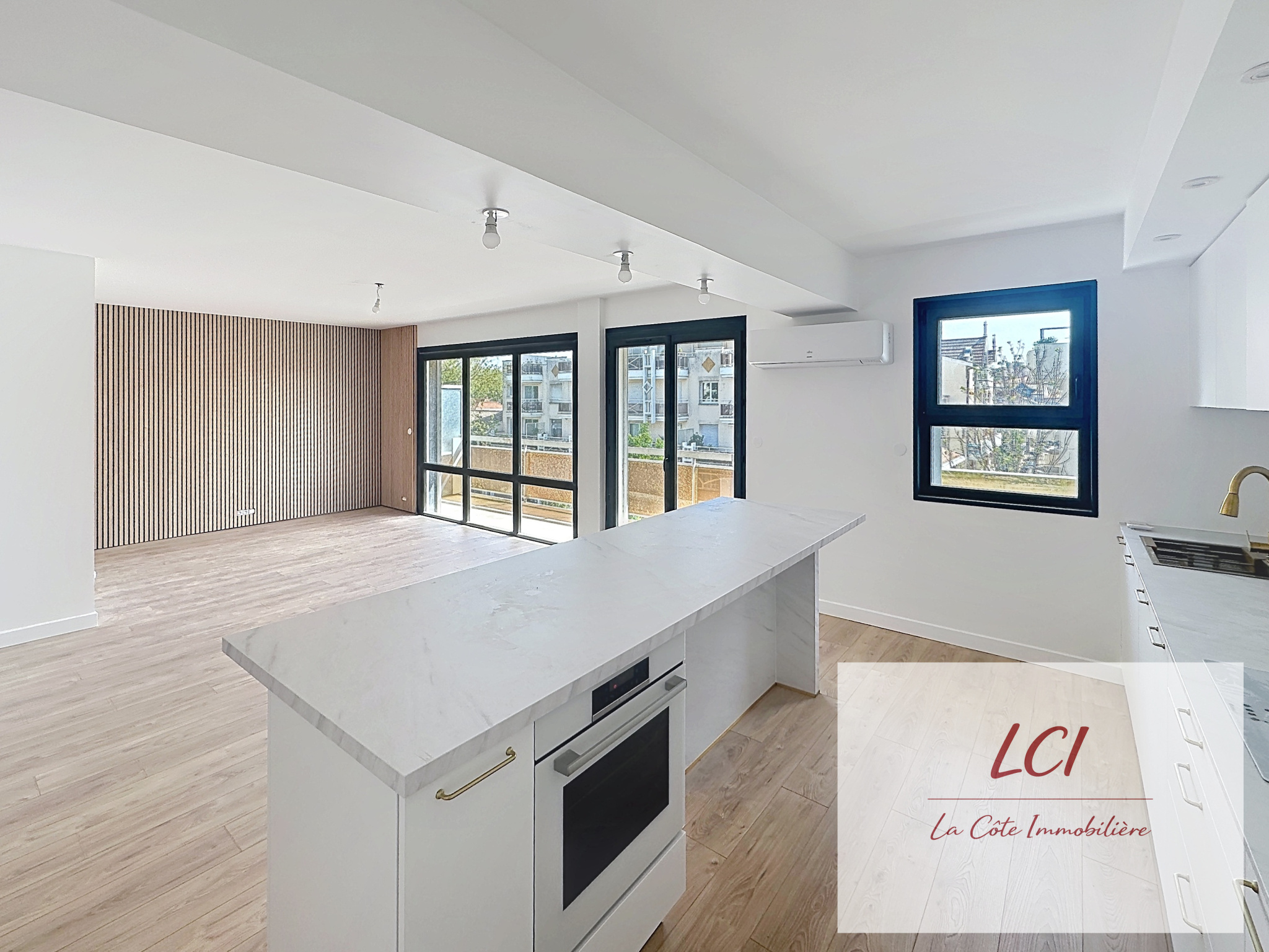 ...L'entrée dessert une très grande pièce de vie de 50 m² avec coin cuisine, véritable coeur de...