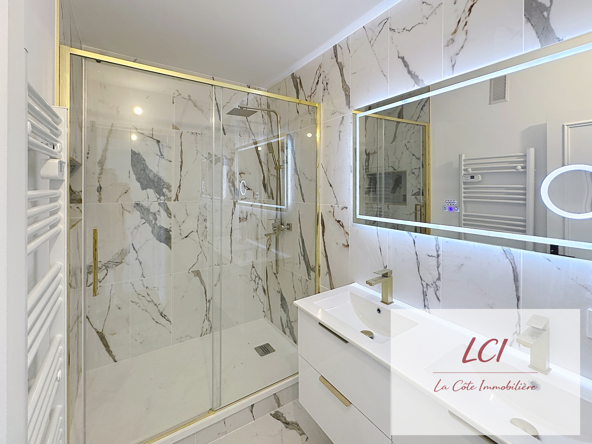 ...L'appartement offre une entrée avec coin cabine, une grande salle de bain accessible PMR avec WC,...
