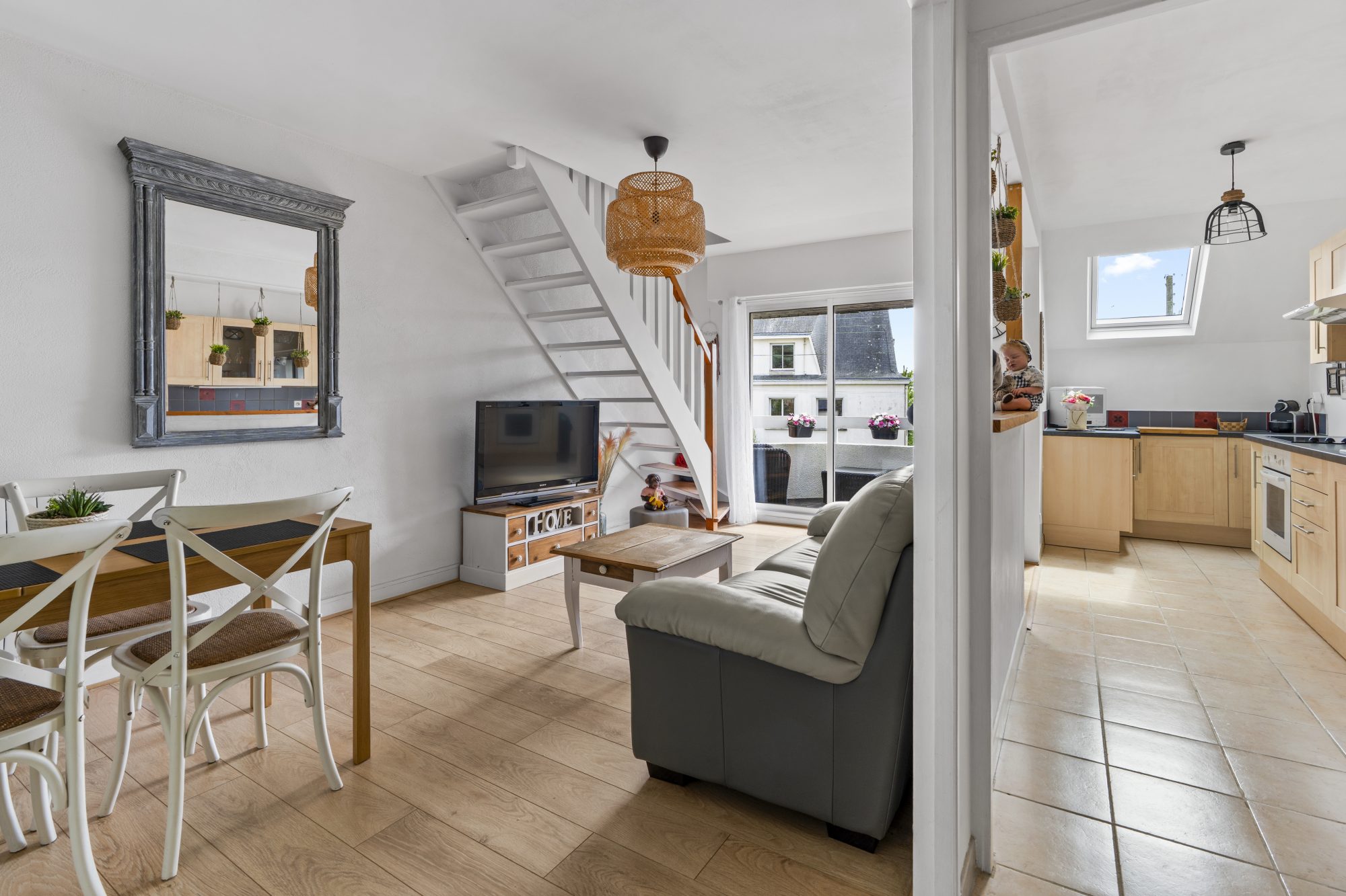 ...Une très belle pièce de vie avec hauteur sous plafond (2,80m), cuisine sur mesure et rangements...