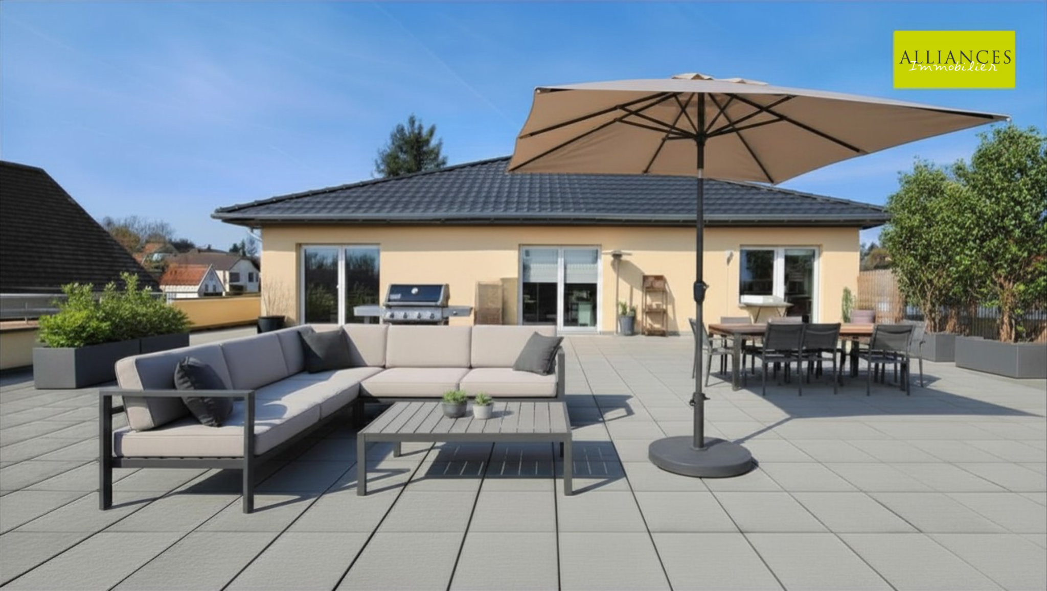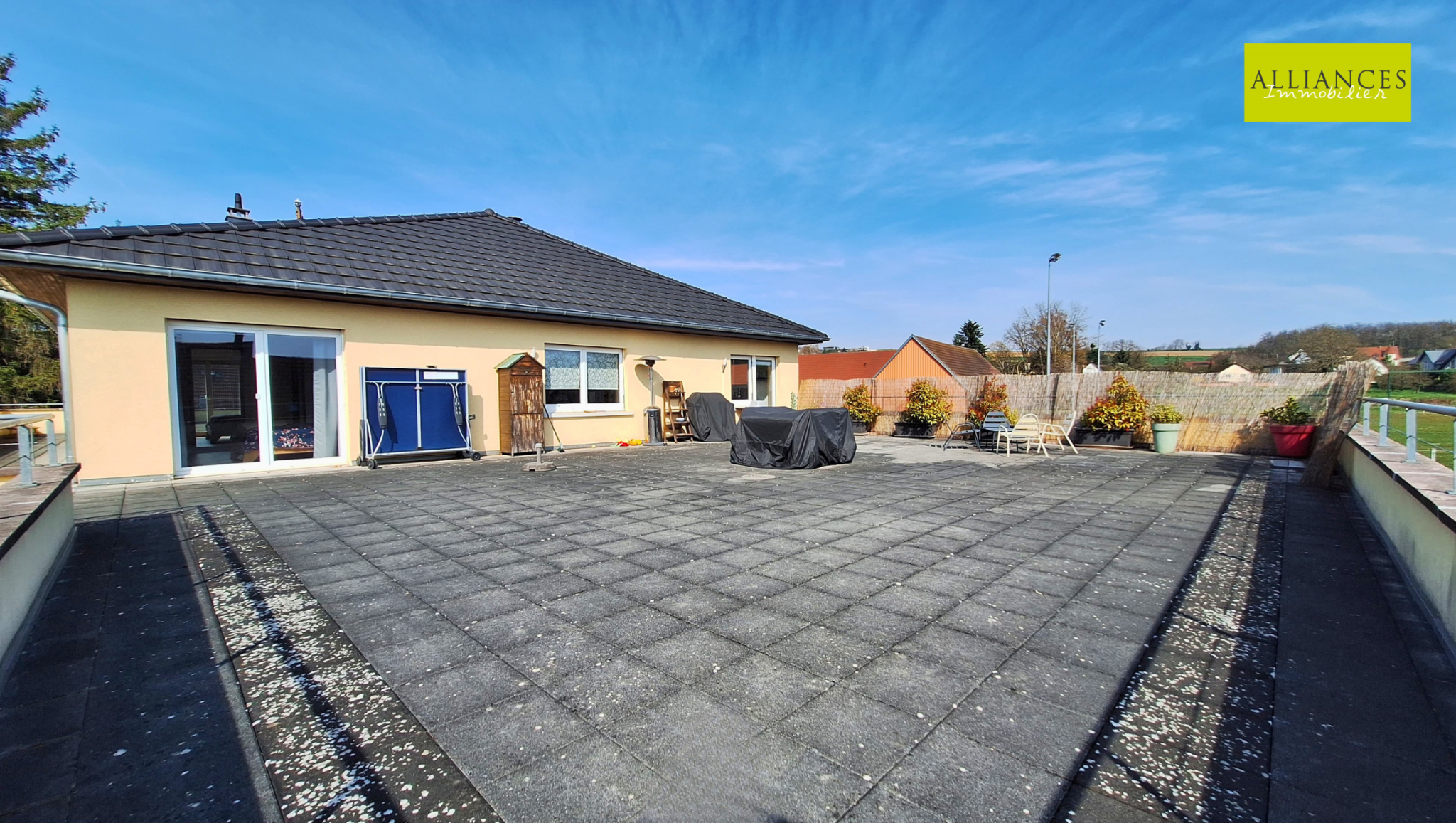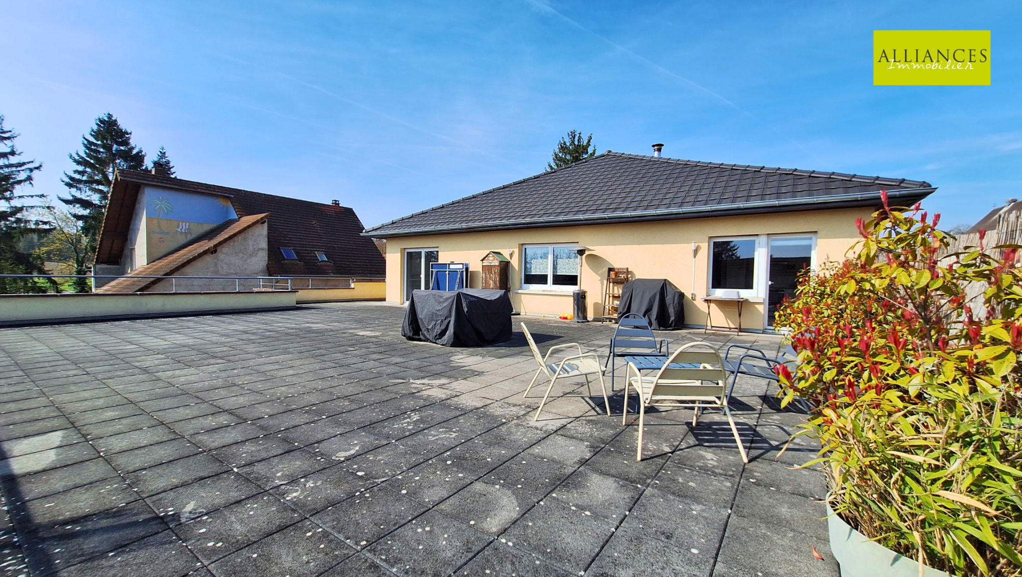 ...Avec ses deux terrasses et ses baies vitrées, vous aurez la chance d'être face à la verdure...