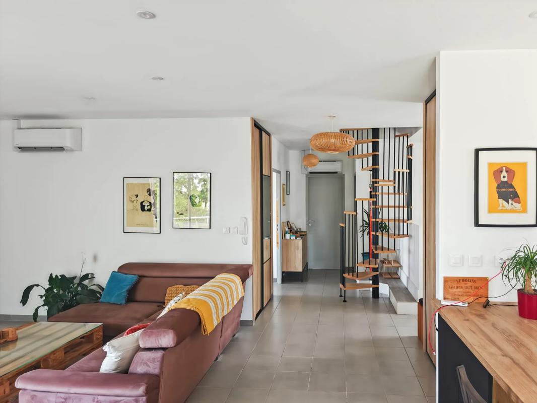 ... une entrée avec placards et WC, une vaste pièce de vie avec cuisine ouverte, une suite parentale av...