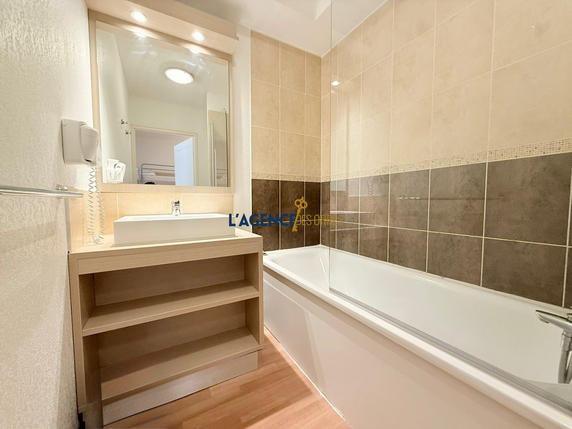 ...Il bénéficie d'un emplacement au calme, sur le haut de la station, et reste à deux pas du front...