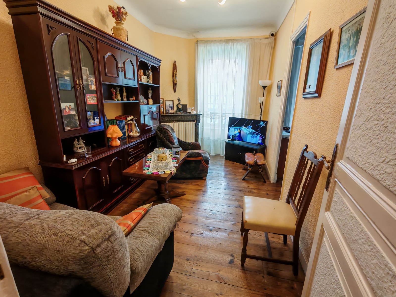 ... d'un immeuble ancien de caractère, le bien séduit par ses hauts plafonds, grandes fenêtres et volum...