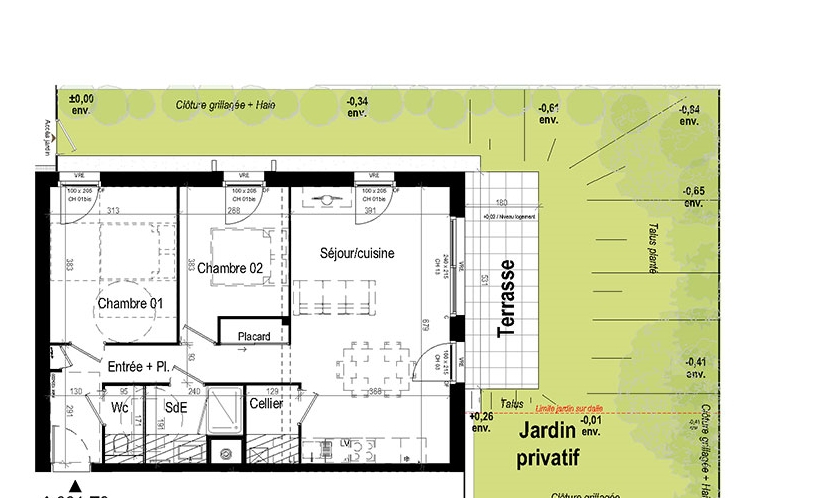 ... - Appartement 3 pièces Ouest - 68.94m² - terrasse de 8.15m² - jardin de 40.57m² - garage - frais d...