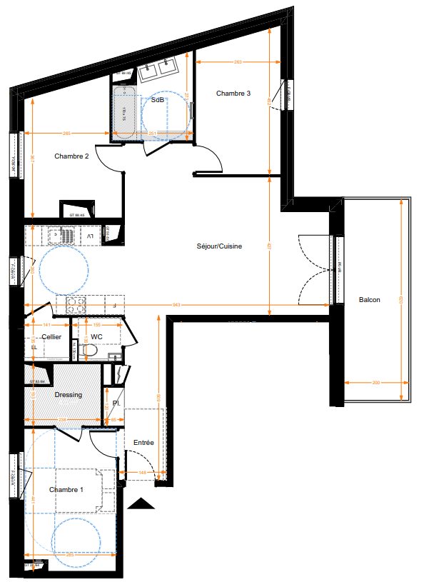 ...80m² Situé dans une résidence neuve, cet appartement de 3 pièces, situé au 1er étage, comprend :...