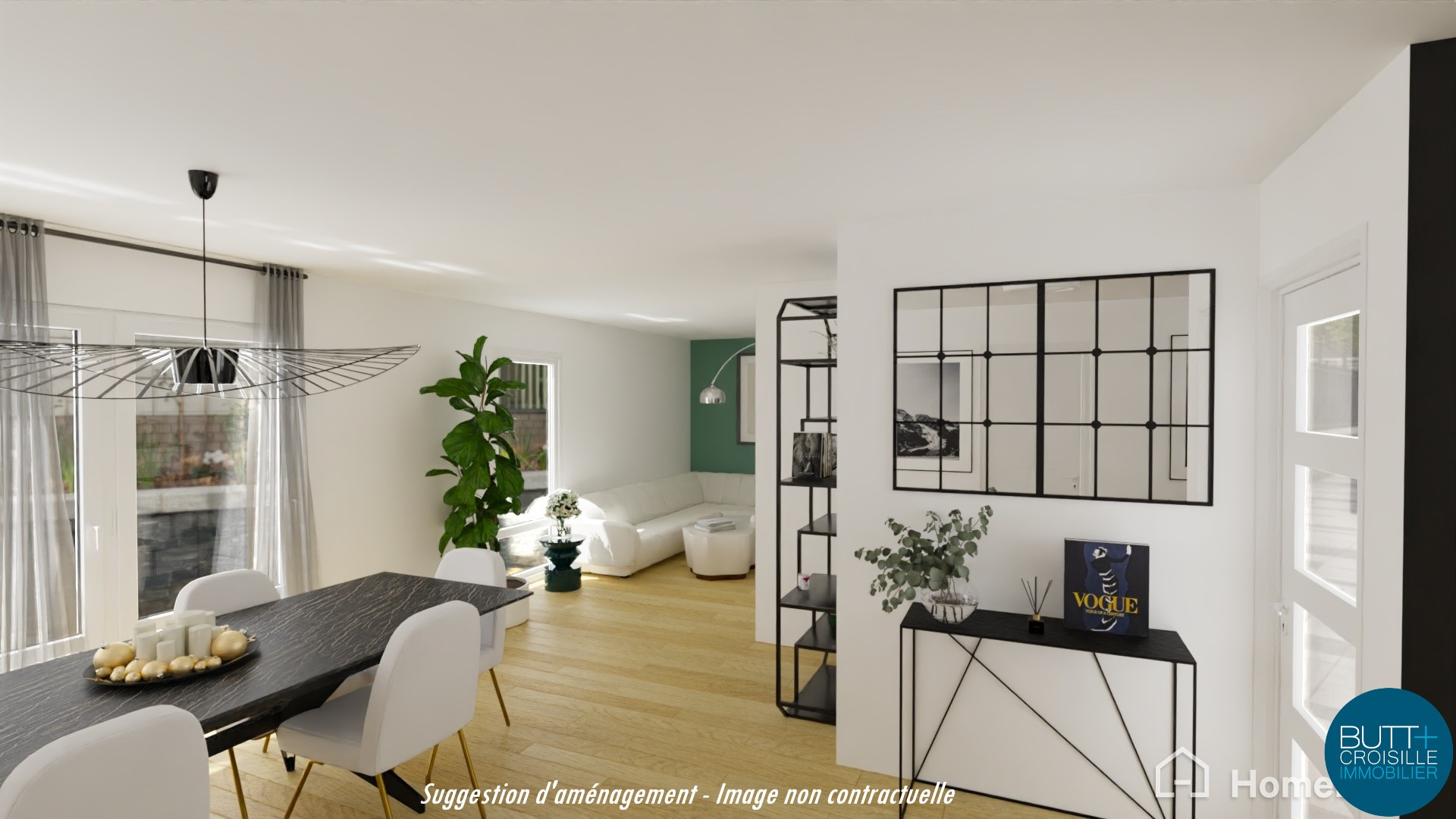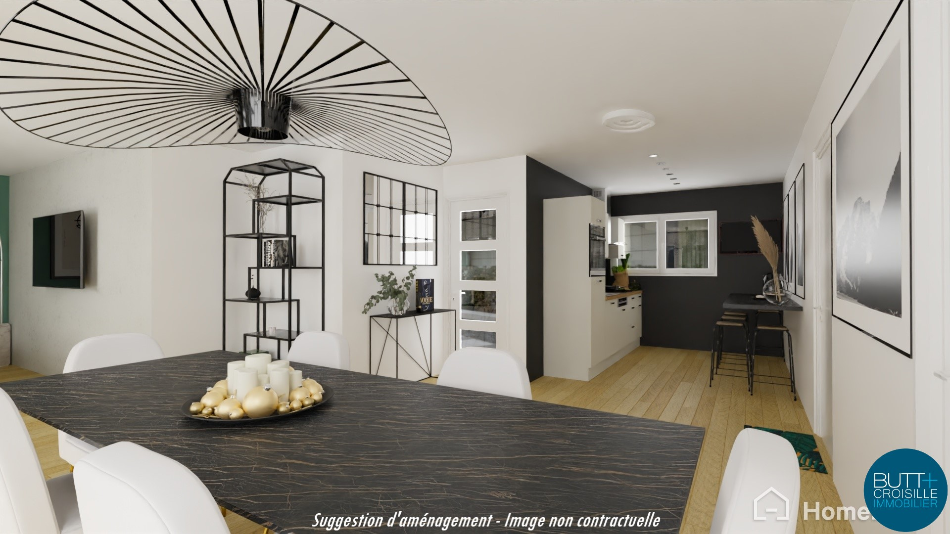 ...Belle entrée, cuisine équipée et salon-séjour avec accès grand balcon de 15 m²sans vis à vis...