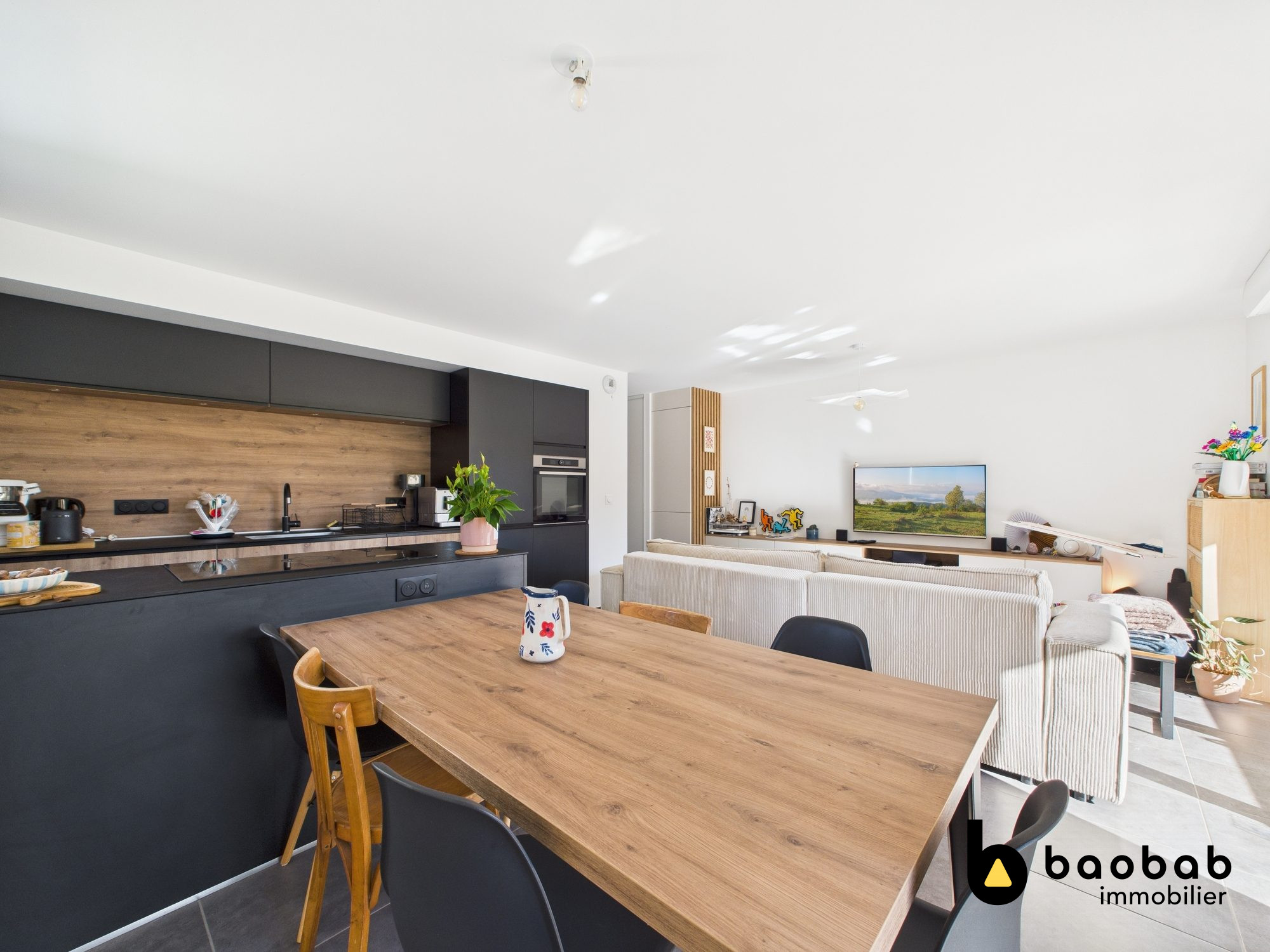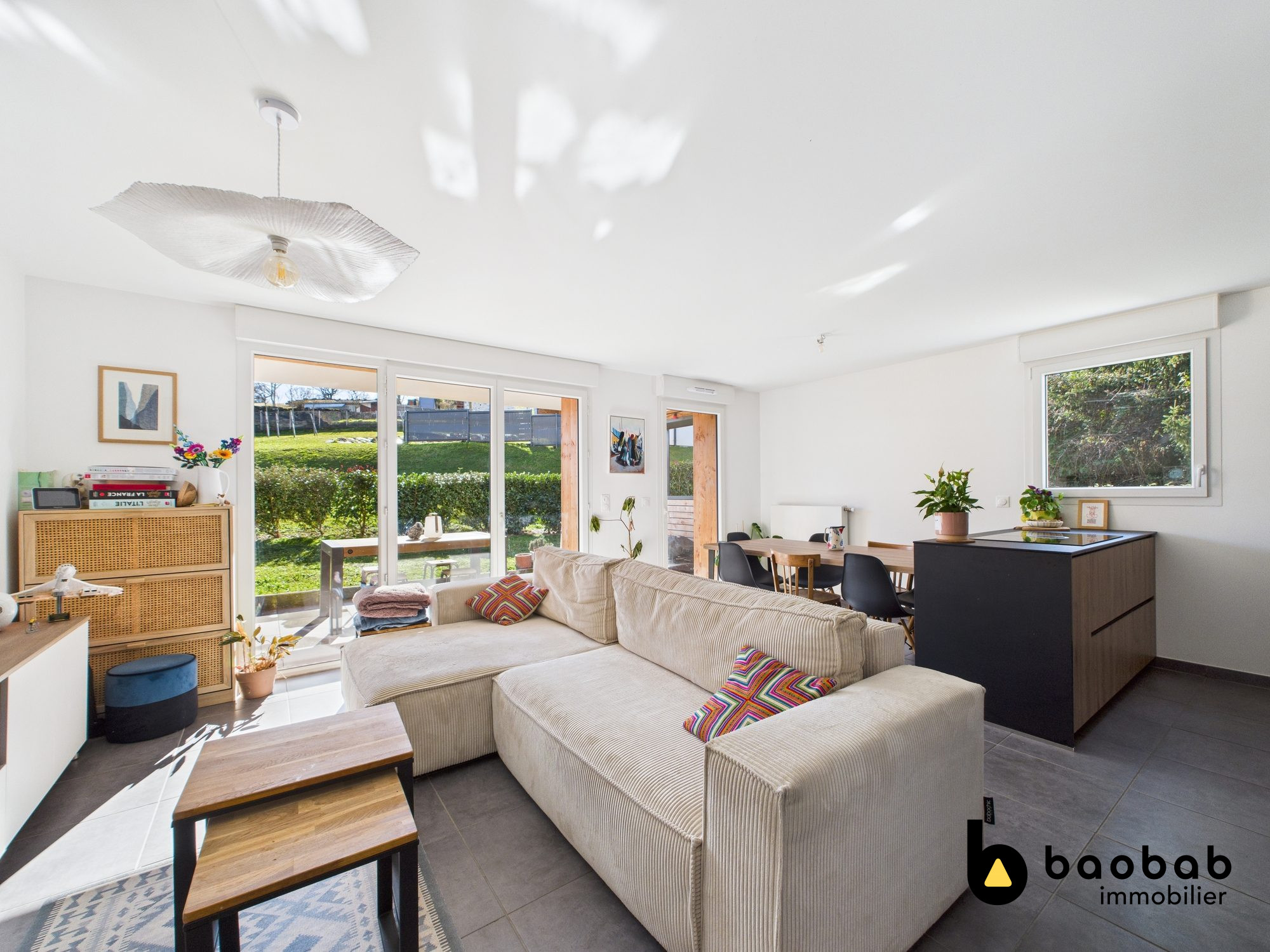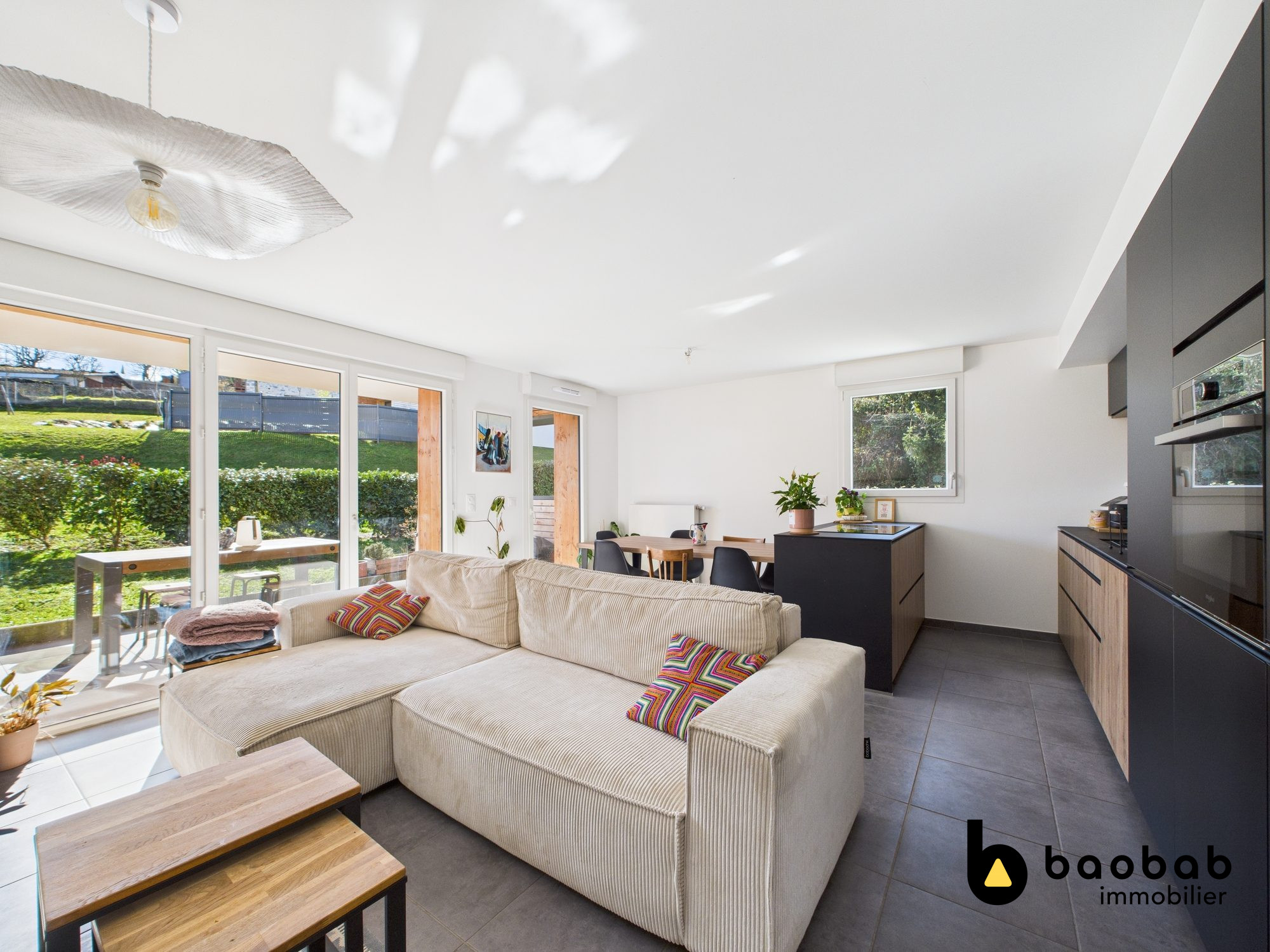 ... d'entrée avec placard desservant une vaste pièce de vie lumineuse avec cuisine équipée et aménagée ...
