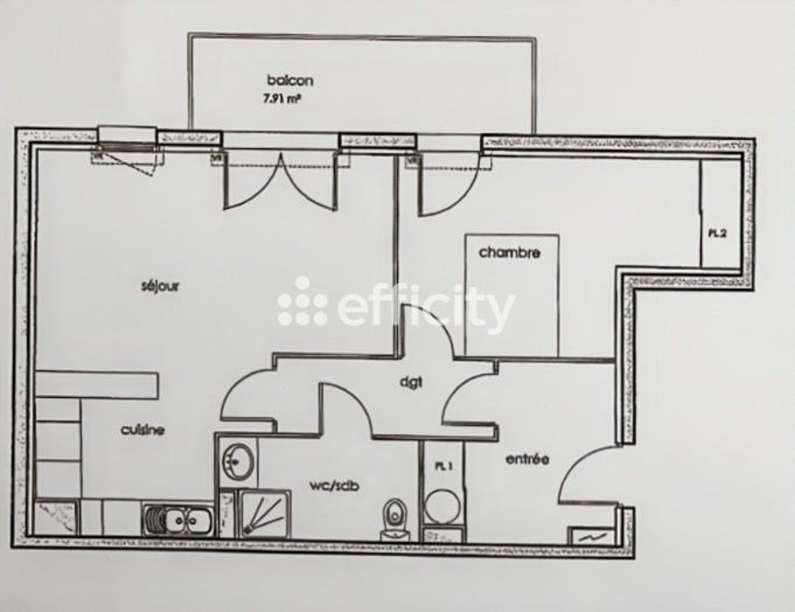 ... spacieuse avec placard et d'un accès au balcon, la pièce de vie d'environ 26 m² s'ouvre aussi sur u...