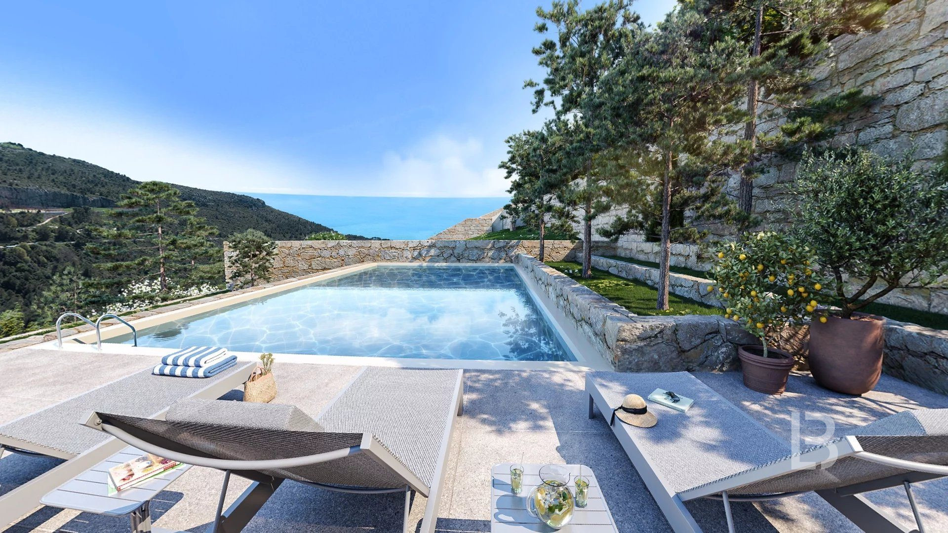...Prestations supérieures, vue panoramique (village et mer), cadre verdoyant avec piscine, à 2...