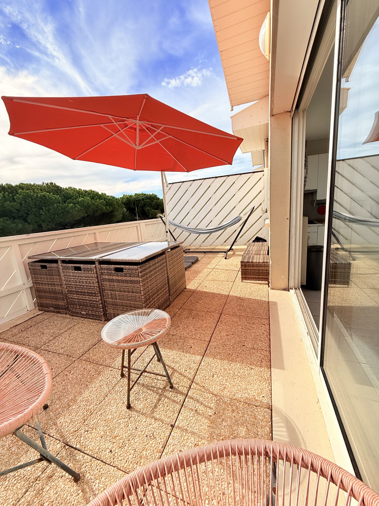 ...Il offre un séjour avec cuisine ouverte éuipée, donnant sur un balcon-loggia couverte ainsi...