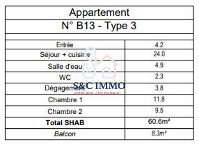 ... cet appartement T3 lumineux et spacieux de 61 m², situé dans un quartier dynamique et bien desservi...