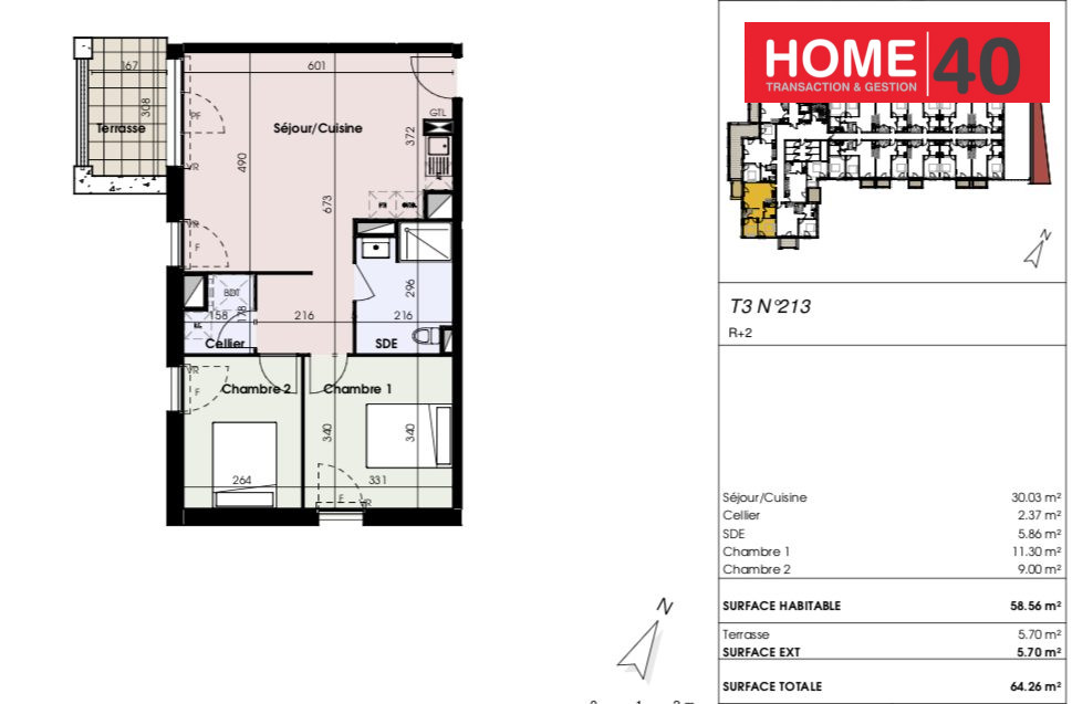 ...Appartement T3, en rez-de-chaussée ou en R+1, comprenant un séjour cuisine, deux chambres, une...