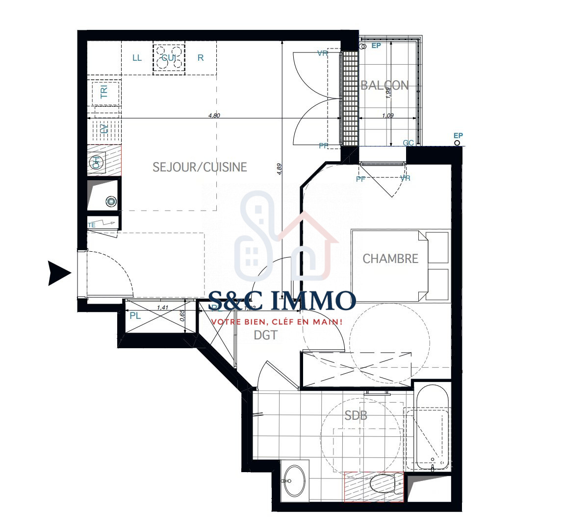 ... d'une résidence moderne et sécurité de deux places de parking. Un 2 pièces libre, prêt à être occup...