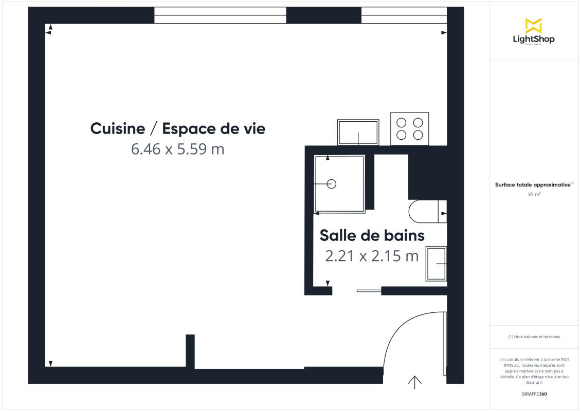 ...Le logement offre une surface Carrez de 35 m² et l'exposition sud assure une luminosité optimale...