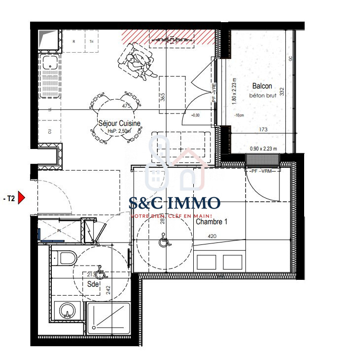 ...Cet appartement comprend : entrée avec placard, cuisine aménagée équipée, salon-séjour, chambre...