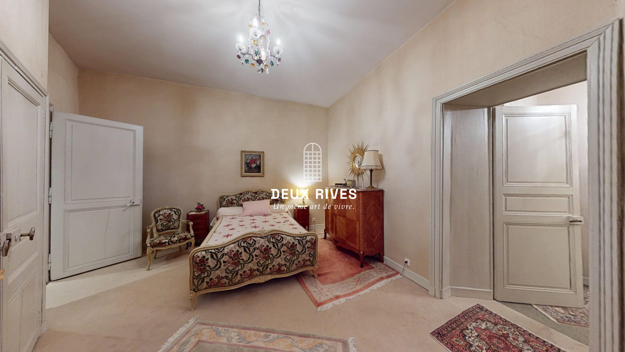 ...Dès l'entrée, vous serez séduit par un vaste salon parqueté, baigné de lumière, avec une cheminée...