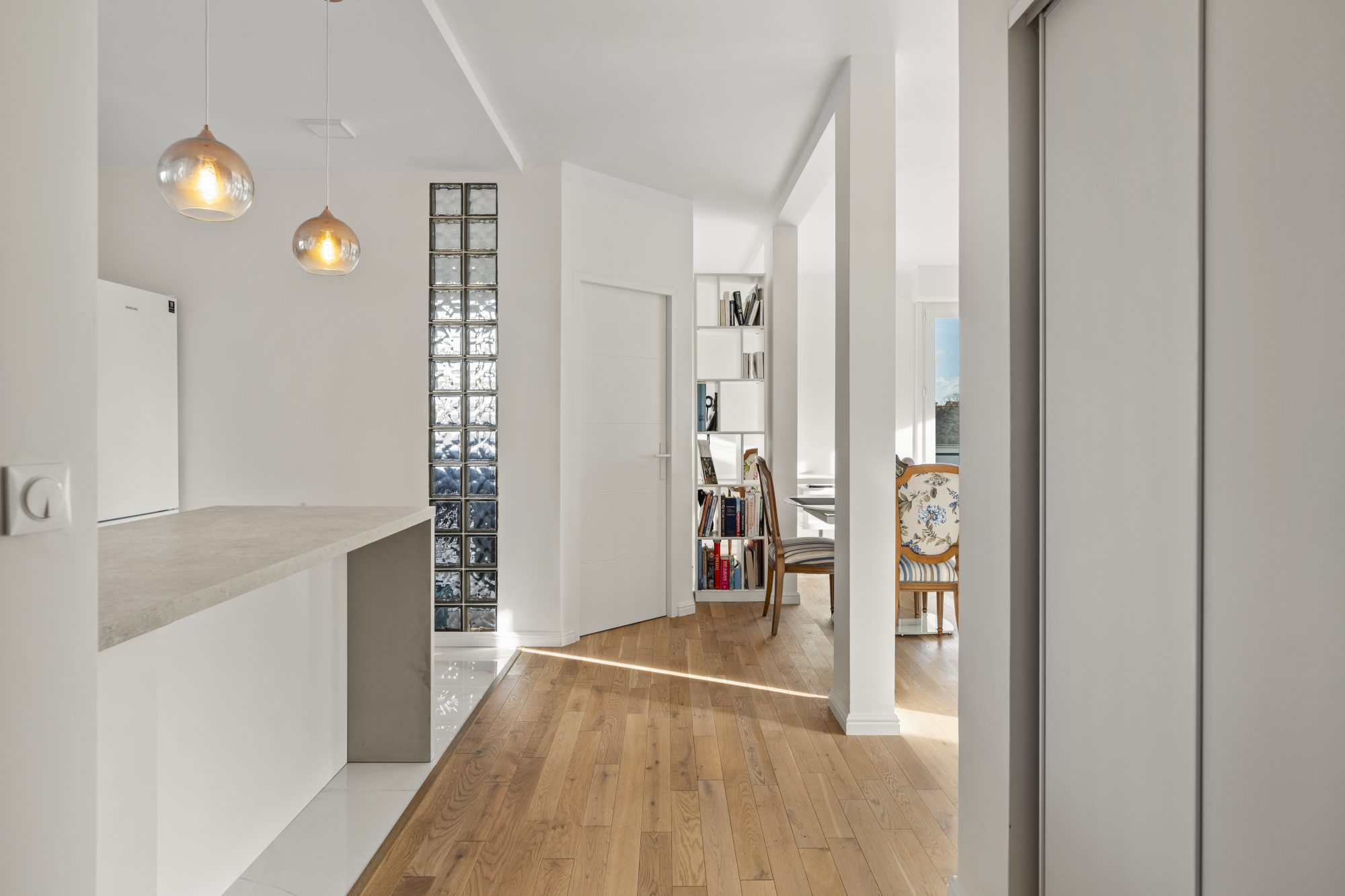 ... avec vue sur le parc, le tout desservi par un couloir avec rangements. Le bien propose également un...