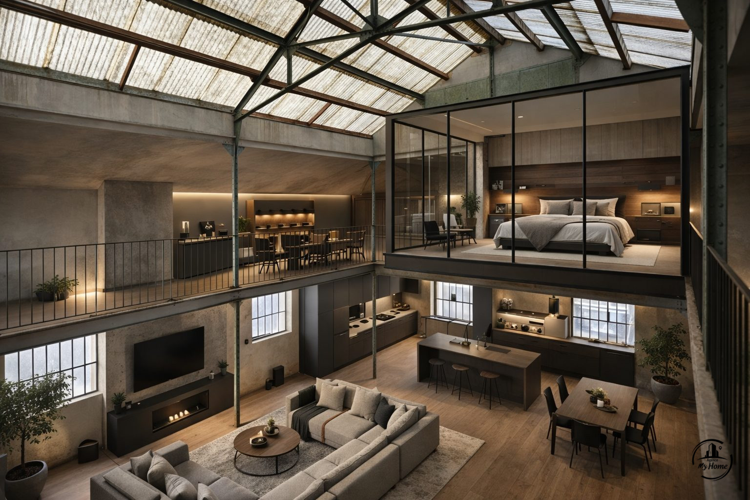 ...Avec 180 m² au sol et 9 m de hauteur sous toiture, cet espace permet à chacun d'envisager un...