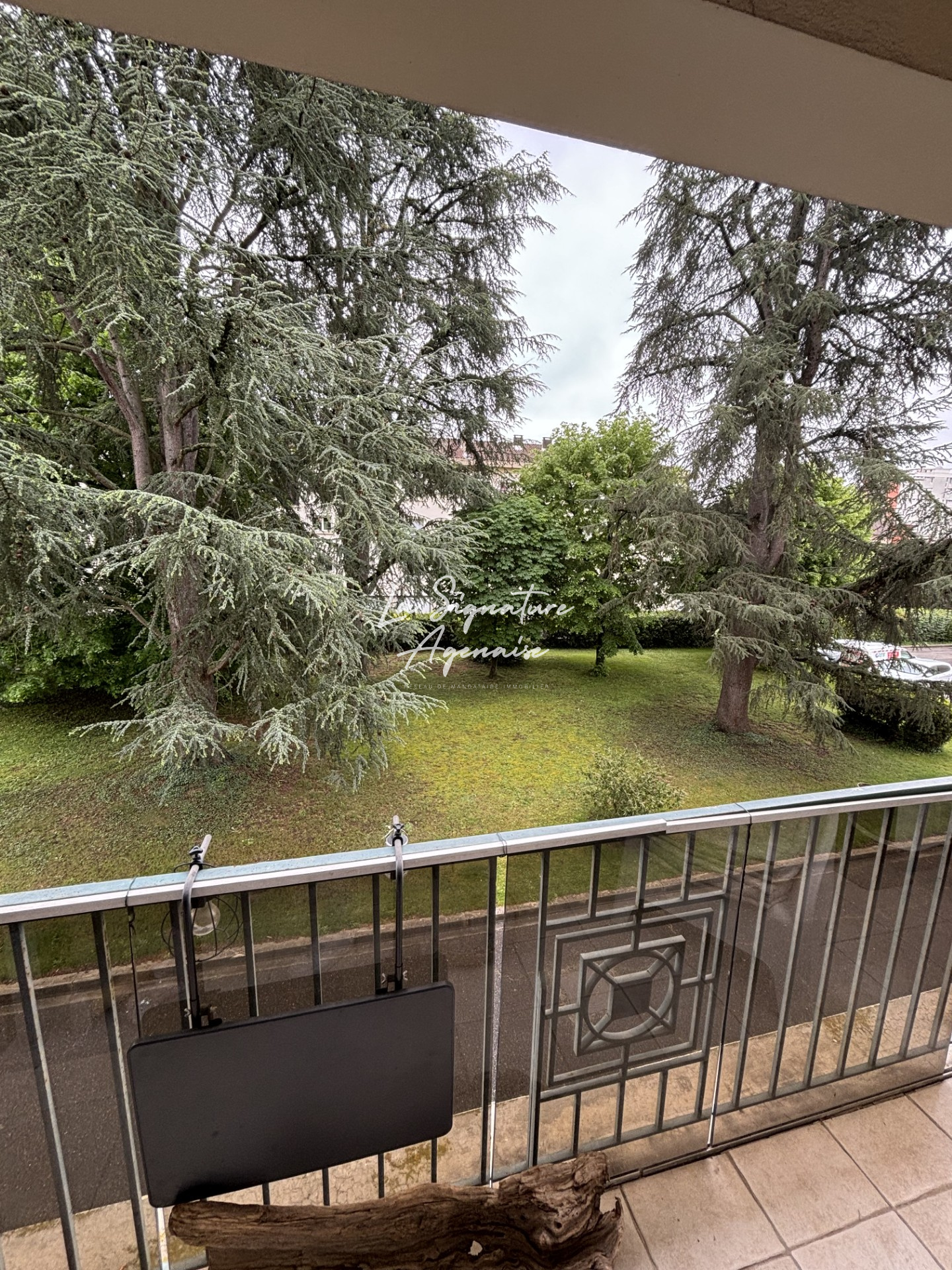 ... une vue sur le parc arboré de la résidence.