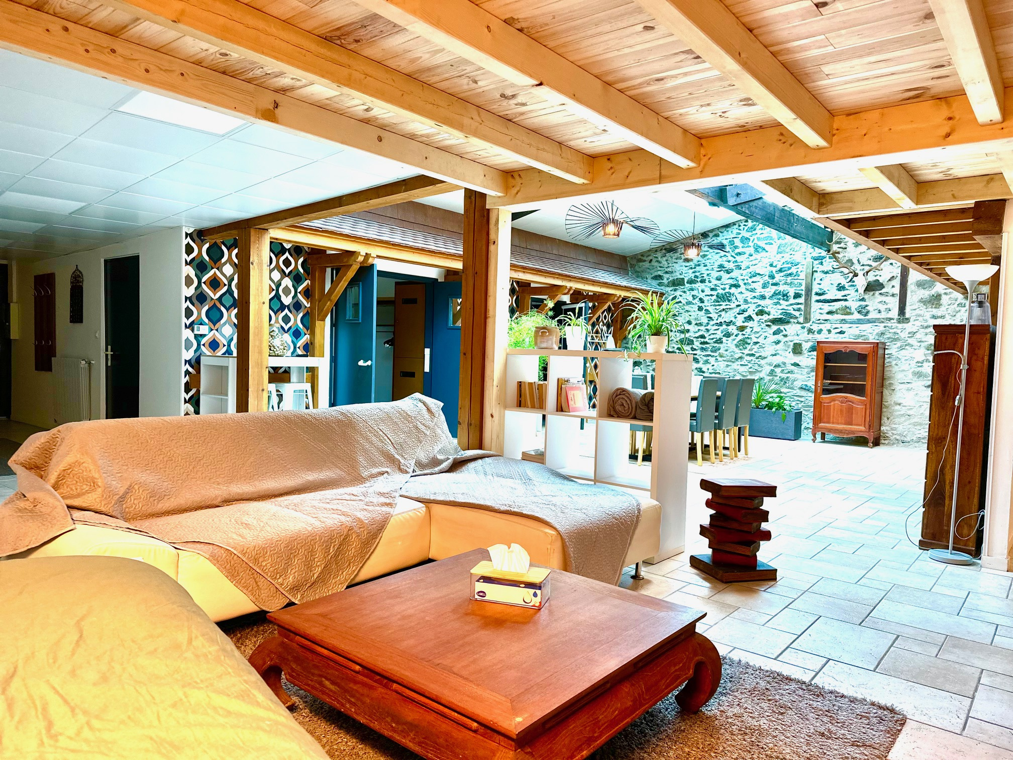 ...Demandez nous la vidéo ! Une belle rénovation mélangeant pierres, bois et modernité...
