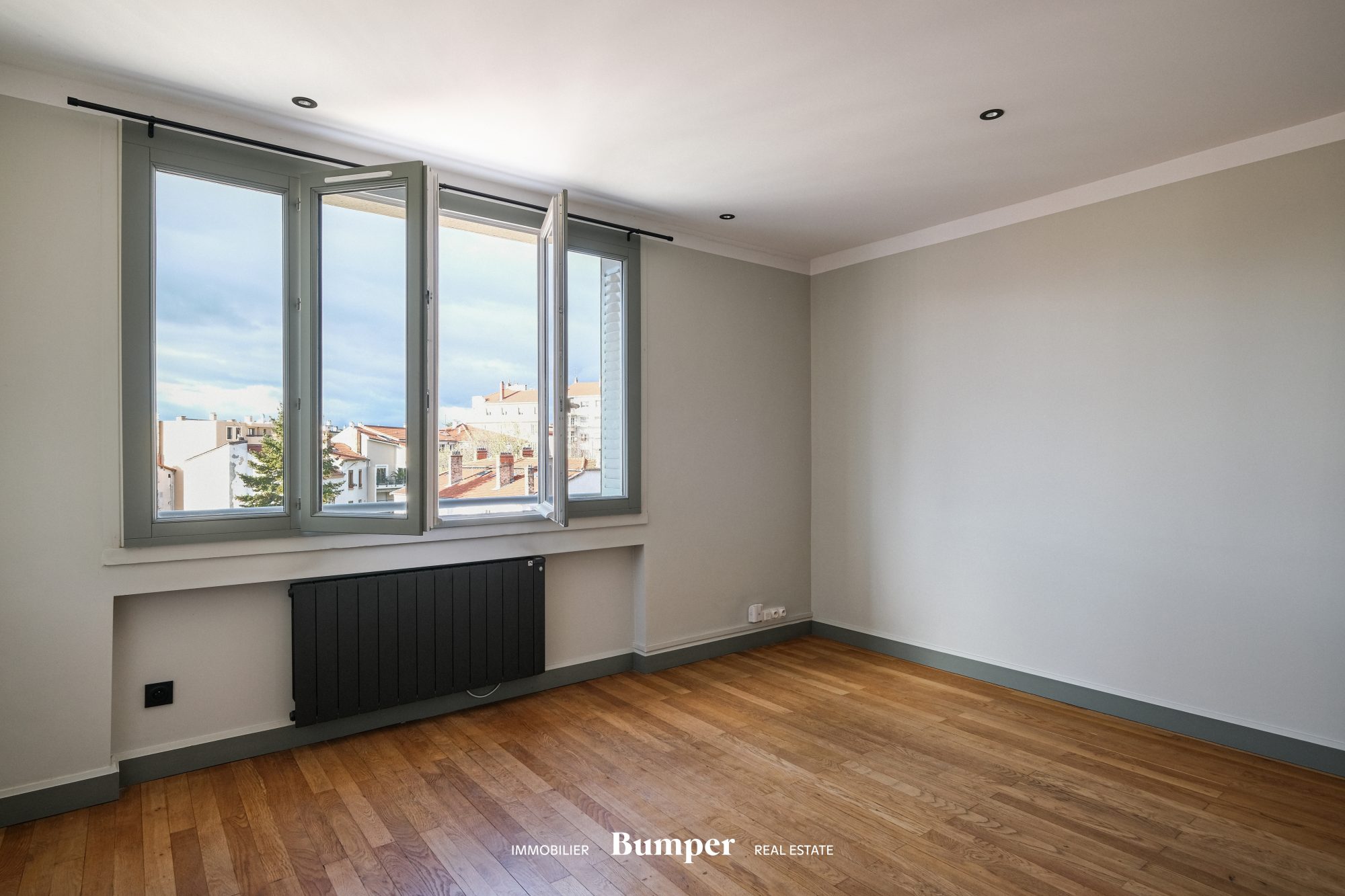 ...Avec ses 3,94 m sous plafond, ses parquets anciens, ses moulures soignées et ses imposantes...