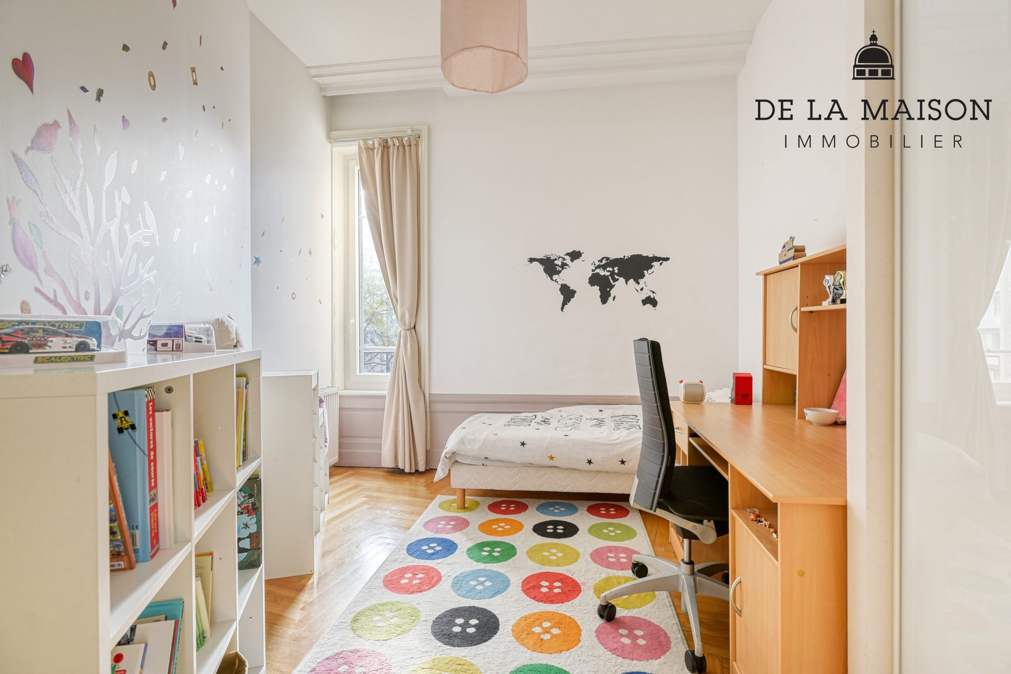 ...Au dernier étage d'un immeuble 1900 de belle facture en parfait état, appartement familial de...