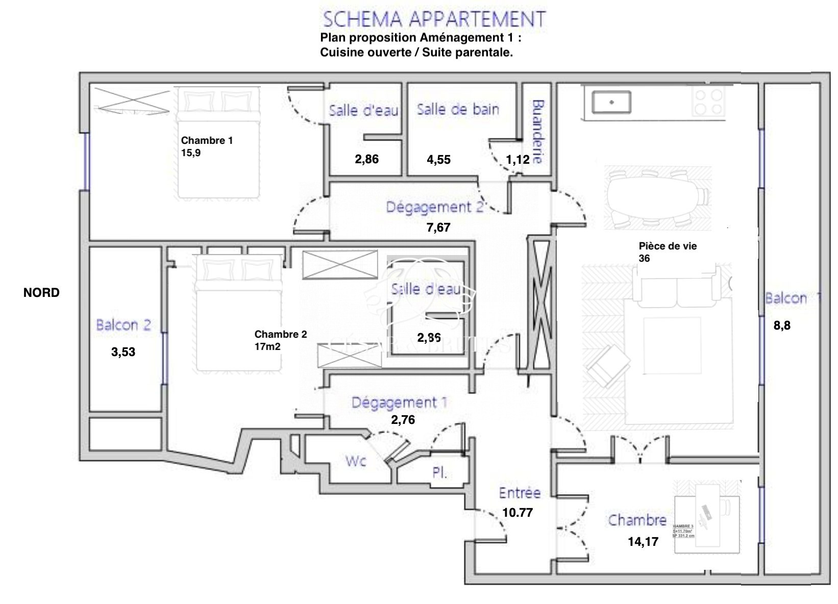 ...Il est composé d'un séjour double de 31 m2 ouvrant sur une terrasse de 12 m2 exposée au sud,...