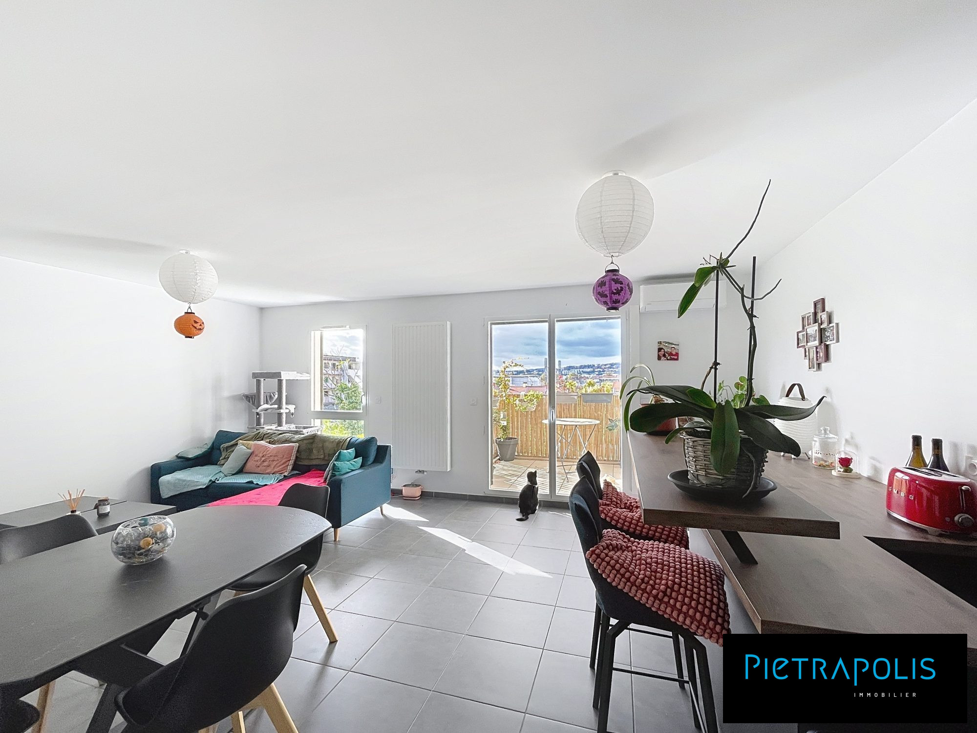 ...La pièce de vie baignée de lumière de 31 m2 exposée Sud-Ouest s'ouvre sur une terrasse de 9 m2...