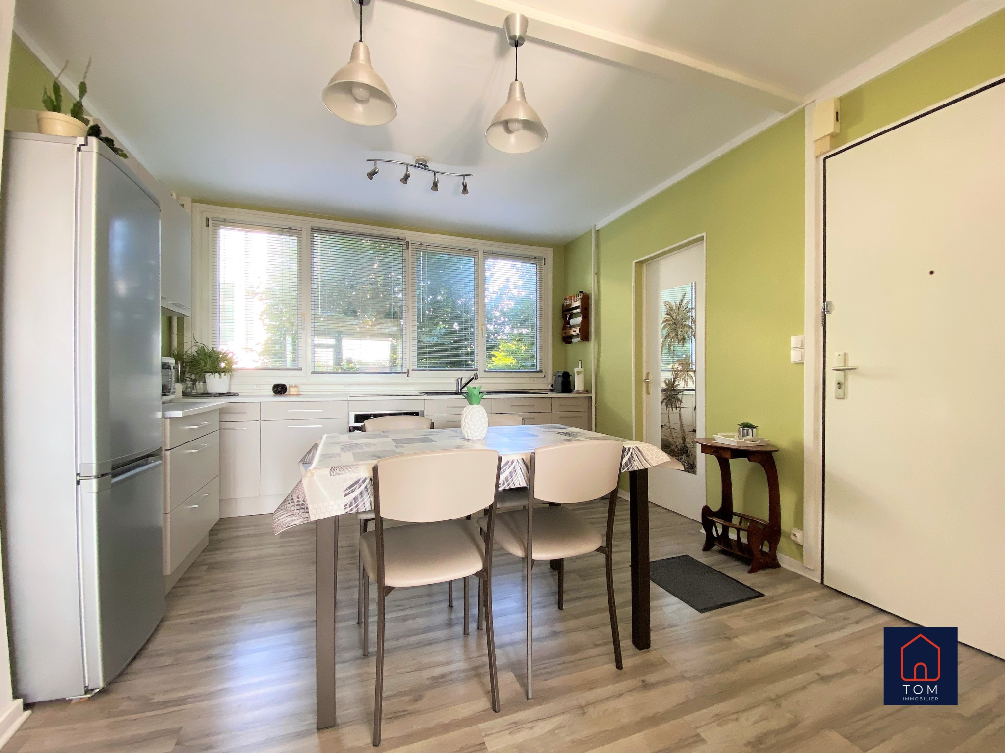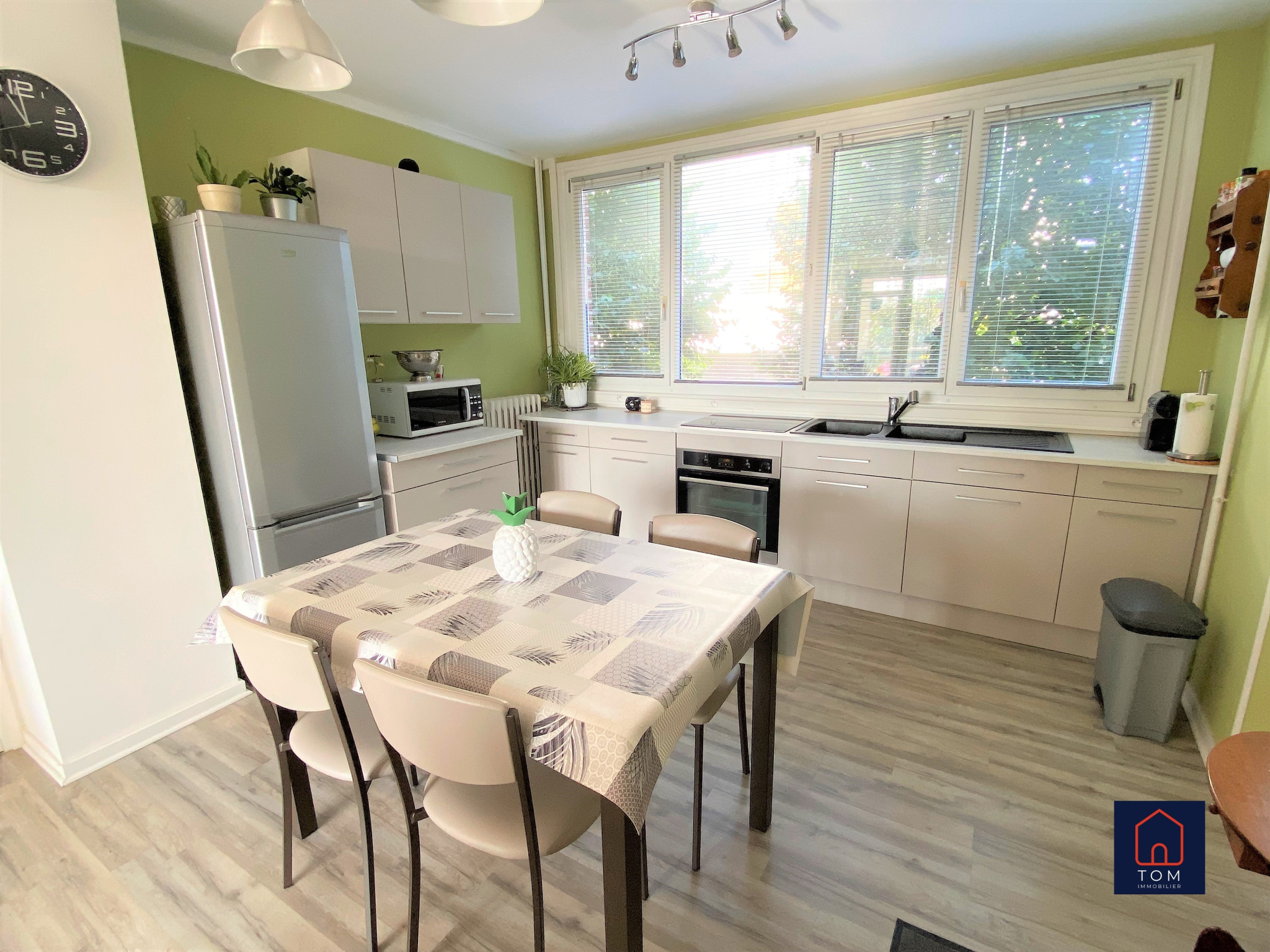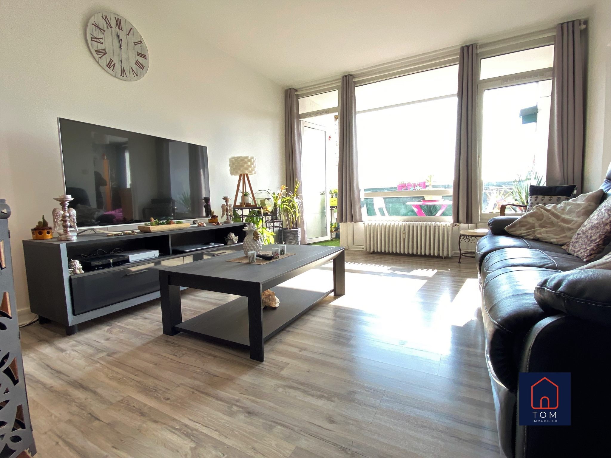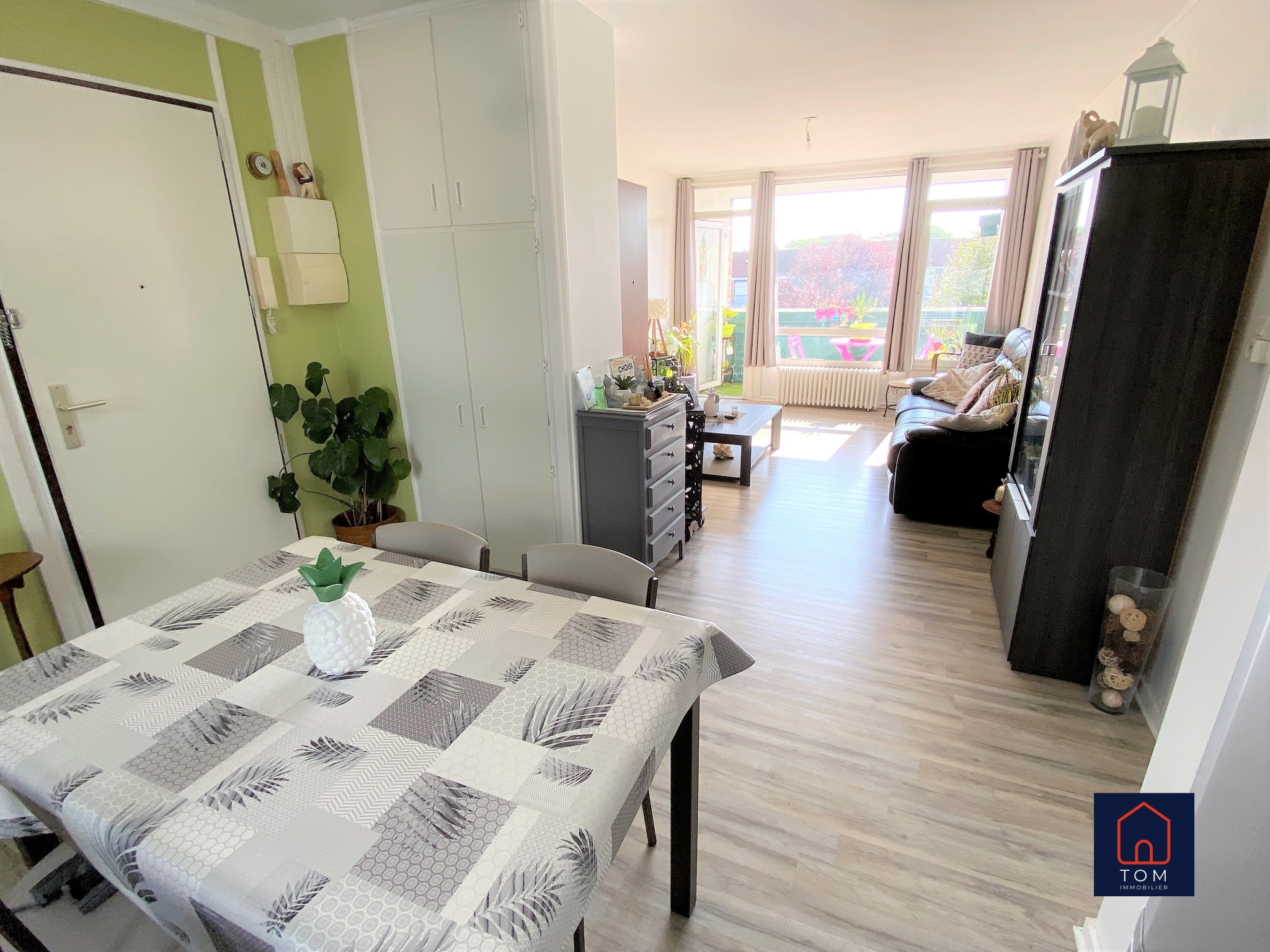 Le séjour se prolonge avec un balcon donnant sur la verdure....