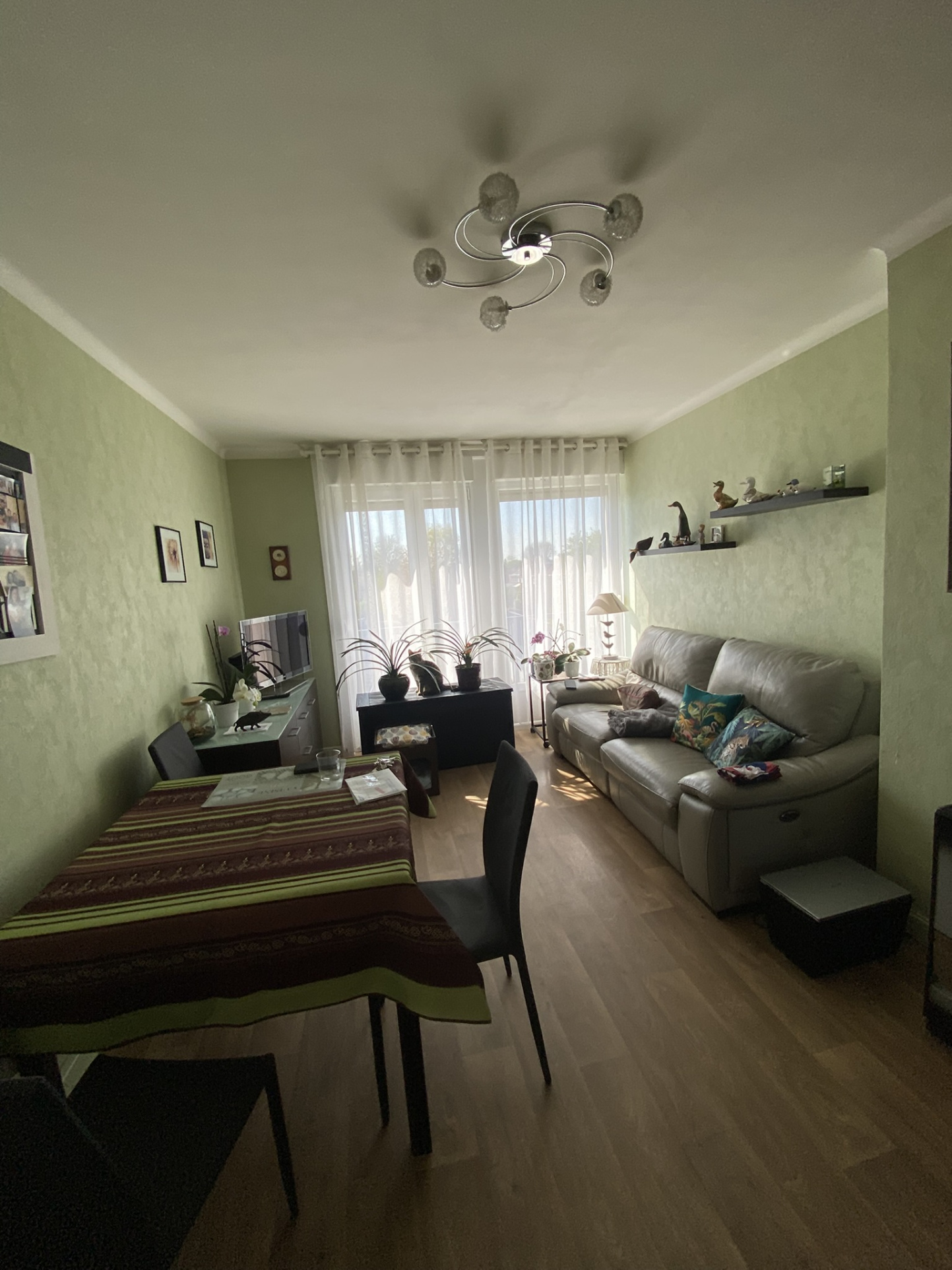 ...Une entrée avec vestiaire distribue :Un séjour salle à manger très lumineux avec porte fenêtre...