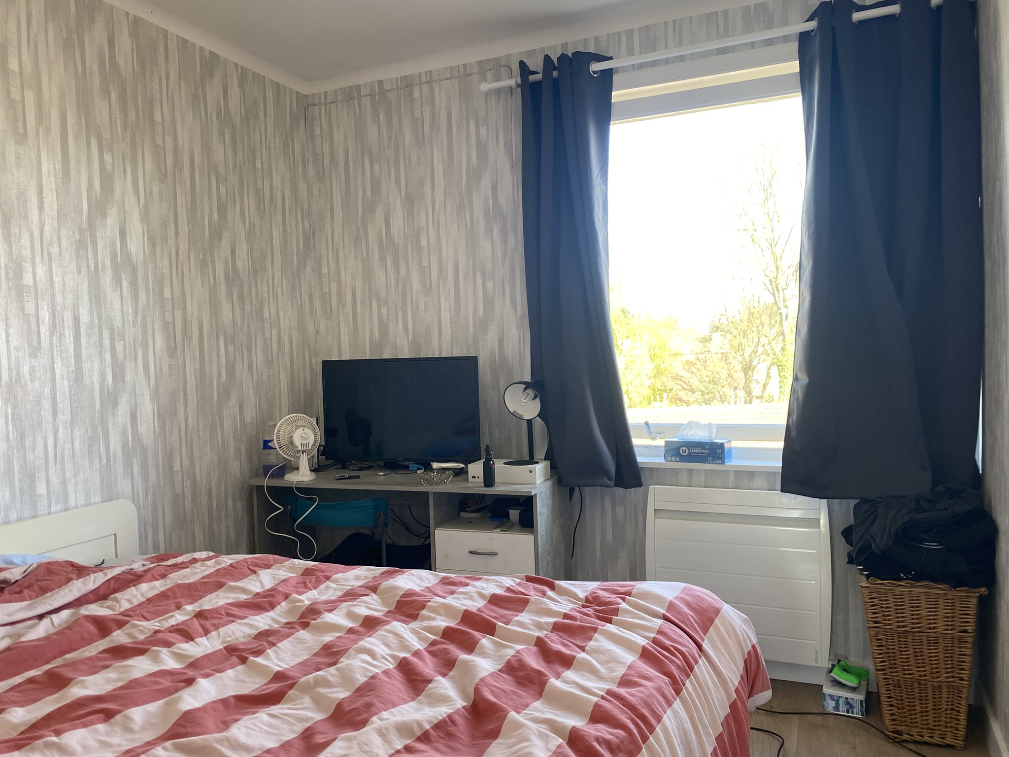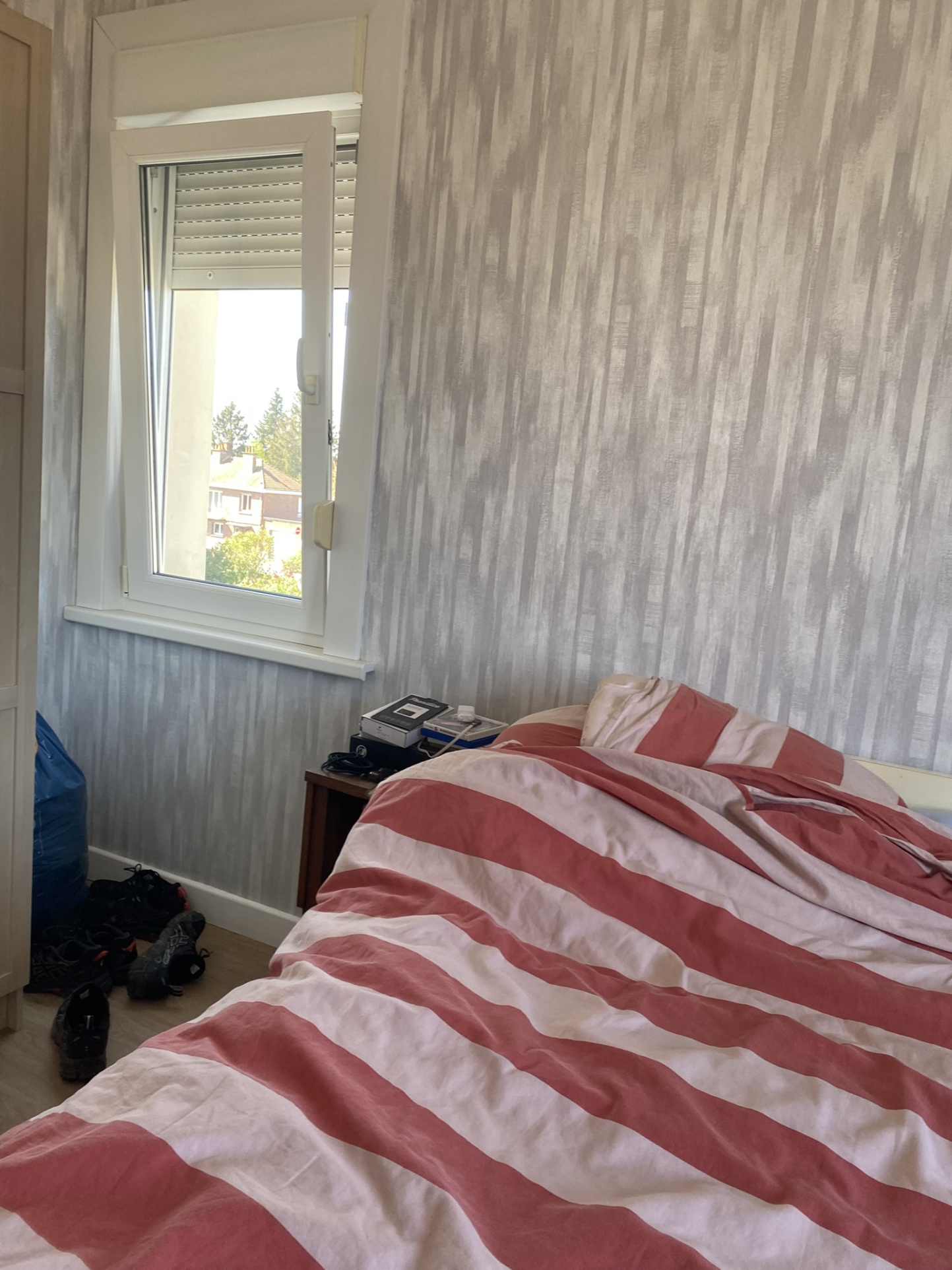 ...L'entrée avec vestiaire dessert une pièce de vie, deux chambres et une salle de douche...