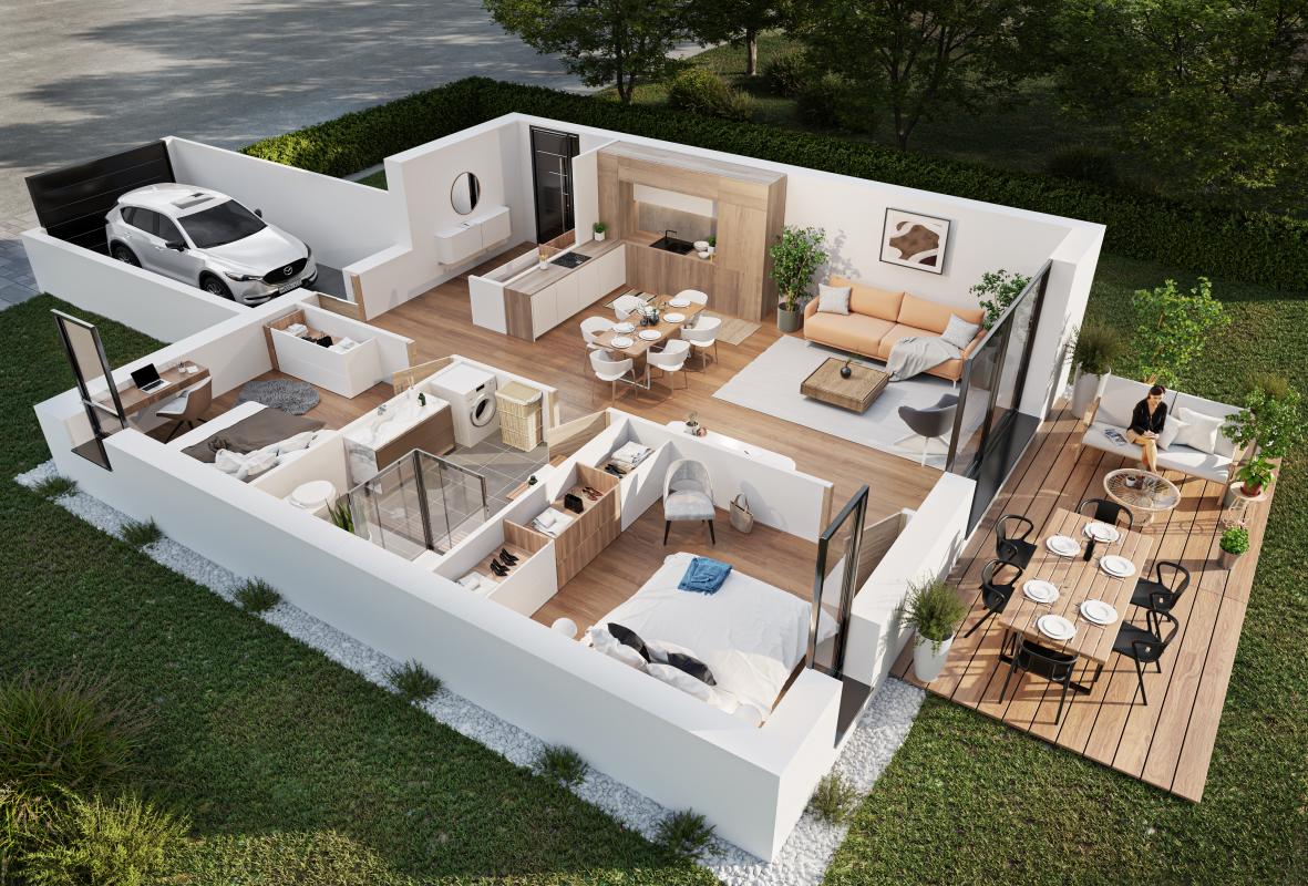 ... plain-pied - Une porte d'entrée de maison individuelle pour rentrer chez vous - Un séjour de 46 m²...
