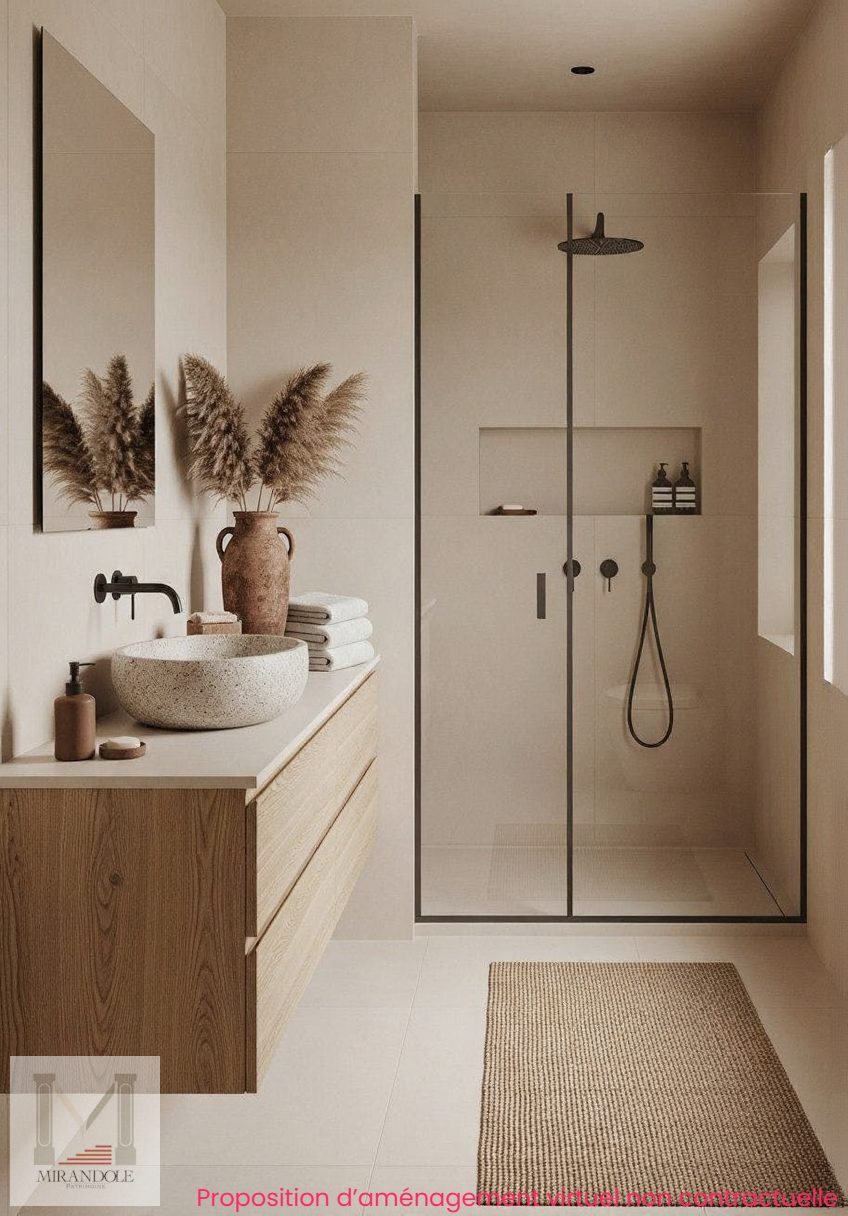 ...Il se compose d'une entrée, d'un séjour / cuisine de 45 m² donnant sur une terrasse de 35 m² SUD...