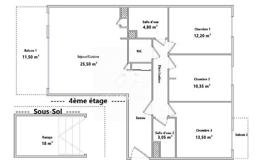 ...Ce T4 traversant EST/OUEST se compose d'une entrée accueillante, d'un séjour spécieux donnant sur...