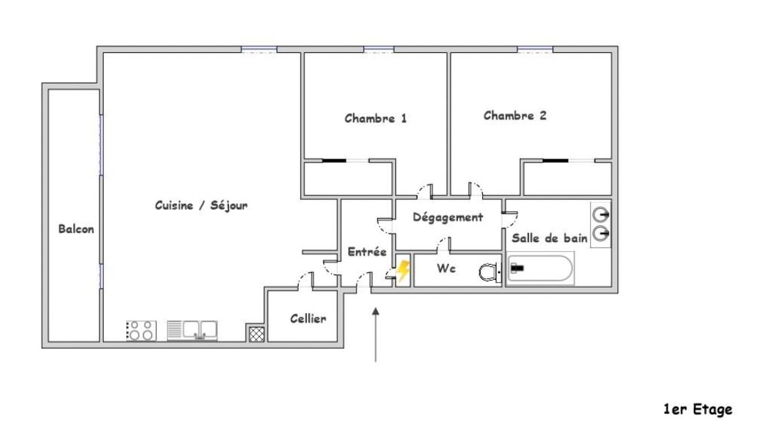 ...Il se compose d'une entrée, une pièce de vie lumineuse de 37m2, 2 chambres, une salle de...