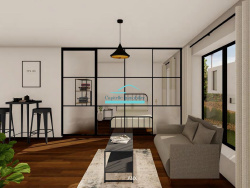 ...L'espace habitable comprend un séjour cuisine de 27m², deux chambres de 12m² et 10m², une salle...
