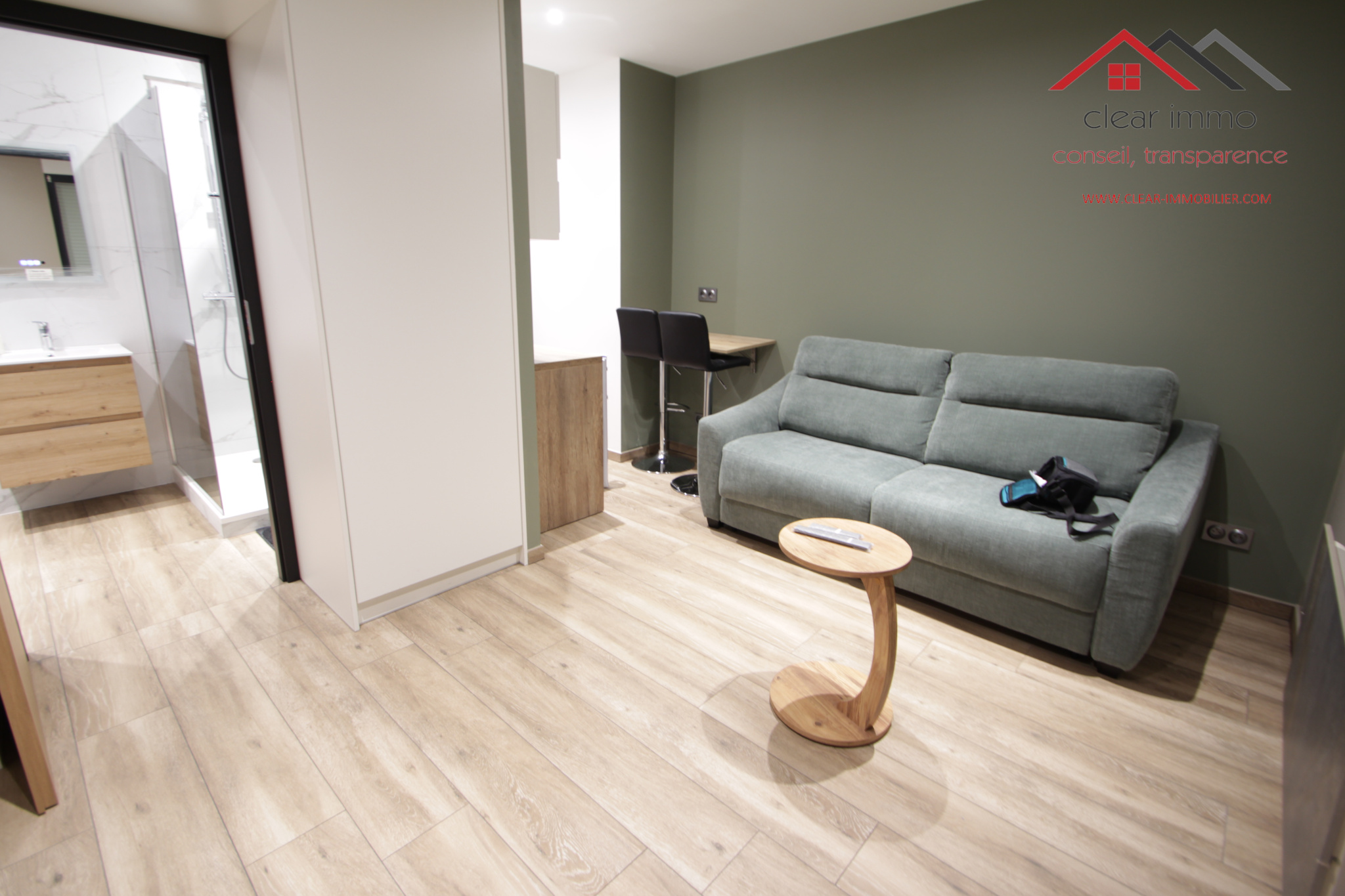 ... se compose d'une cuisine équipée, une pièce vie, une salle de douche avec un wc. Tout le mobilier r...