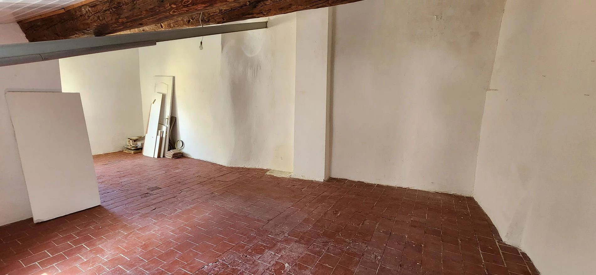 une chambre avec placards,