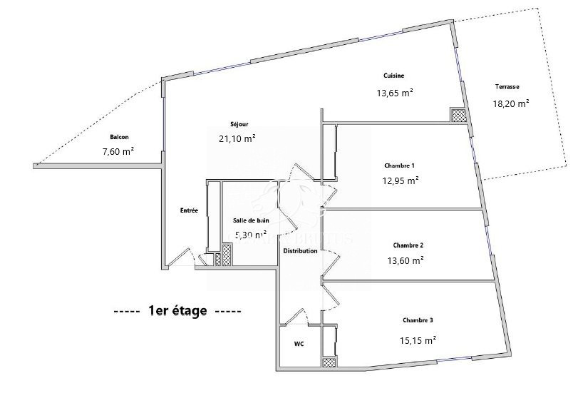 ...Il se compose d'une entrée, d'une belle pièce de vie de 35 m² avec balcon de 7 m² et cuisine...
