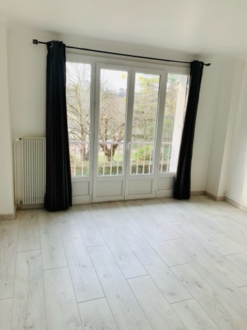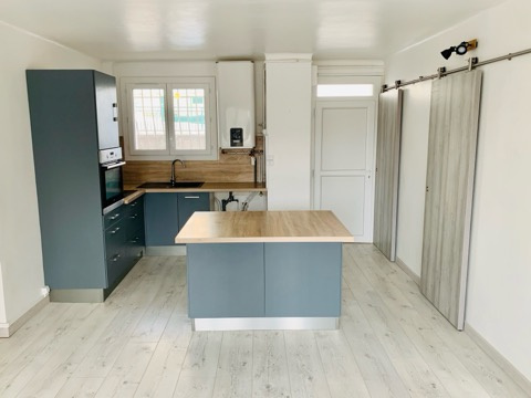 ... vue sur un parc arboré. Cuisine aménagée (four et plaque à induction), îlot central. Nombreux range...