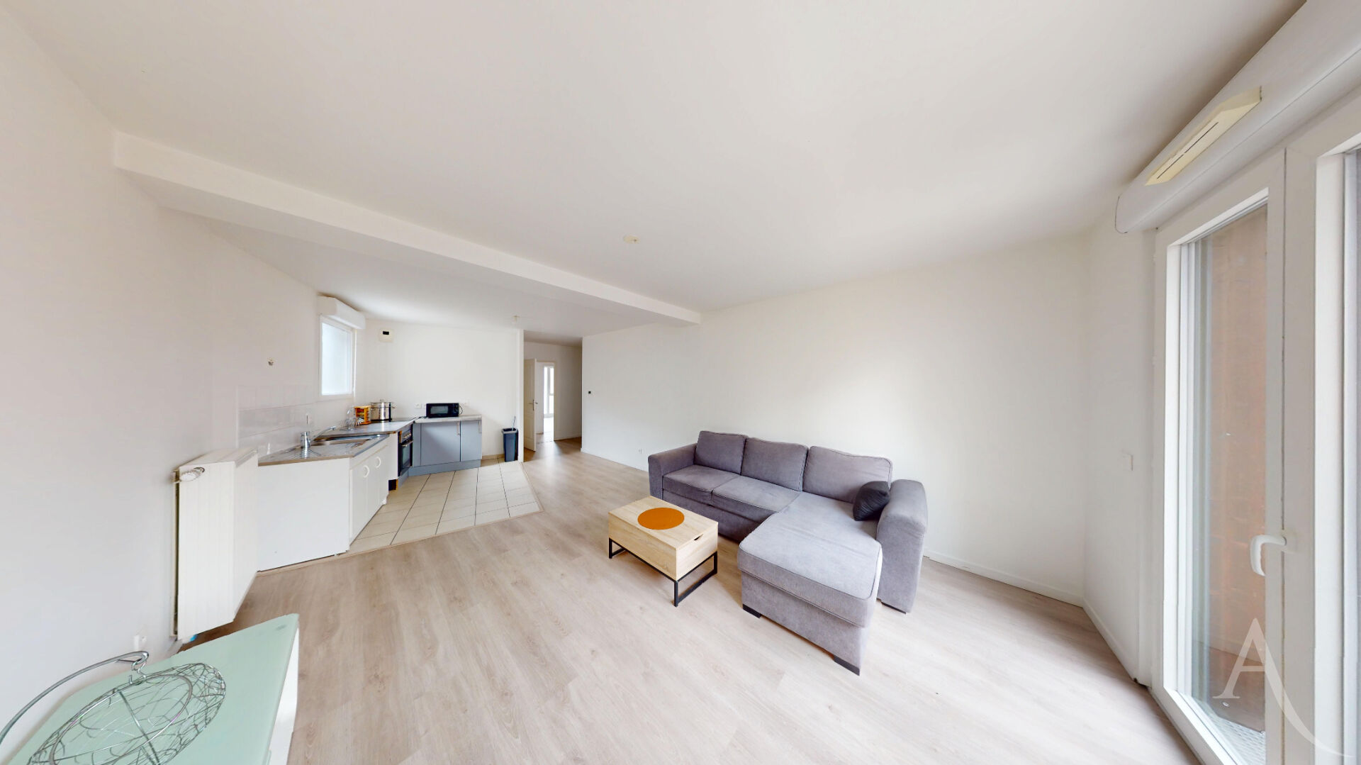 ...L'appartement se compose d'une pièce de vie lumineuse avec parquet, ouvrant sur de larges baies...
