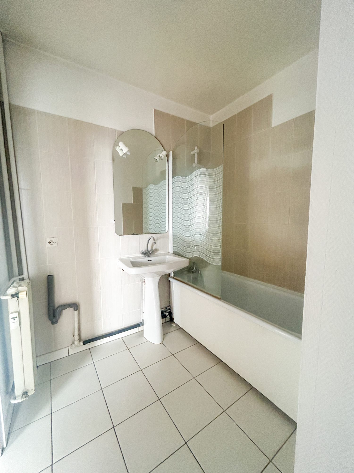...Entrée sur salon séjour, cuisine équipée, salle de bains...