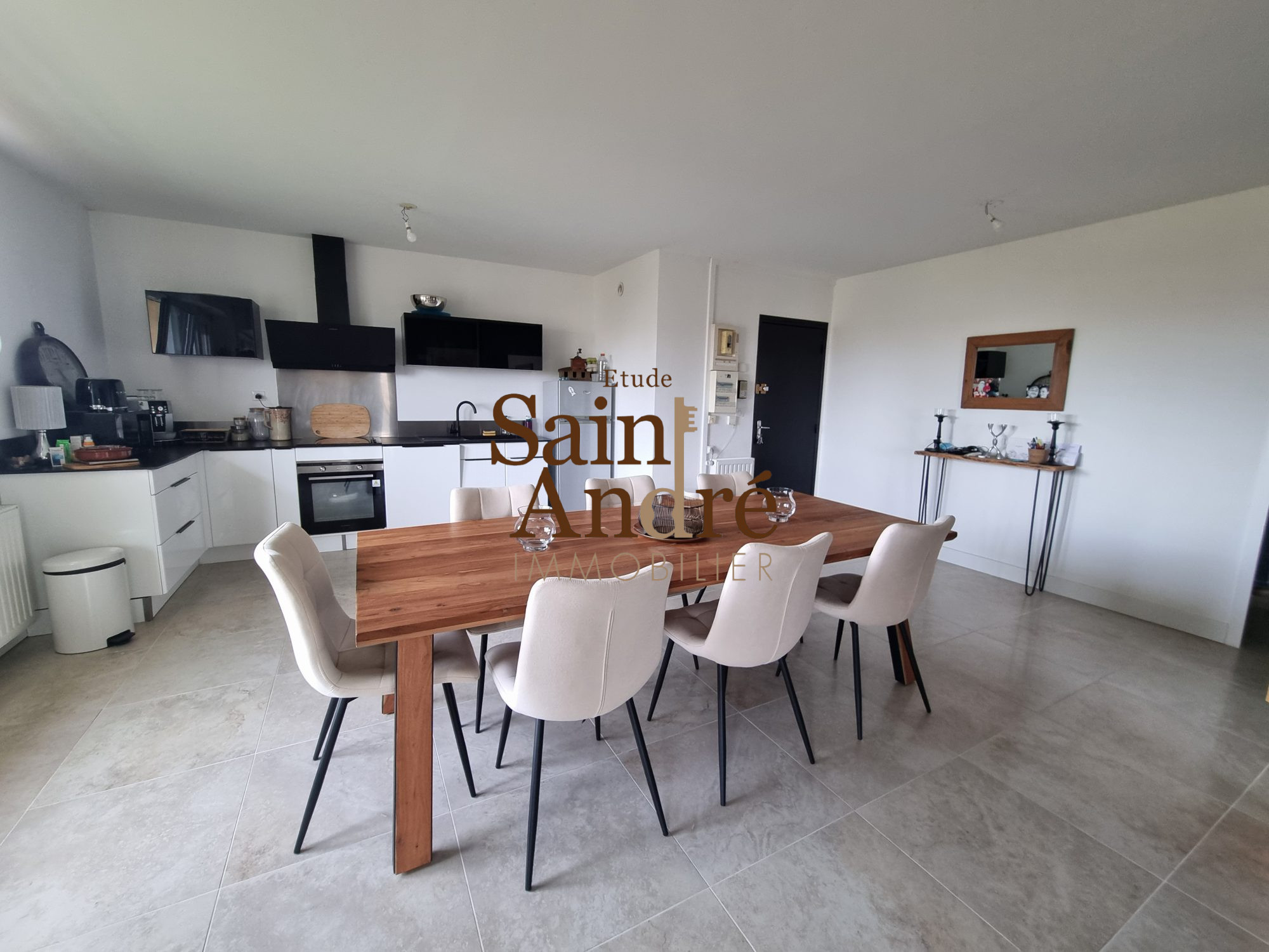 ...Entrée sur grande pièce de vie avec cuisine équipée, salle à manger et salon...